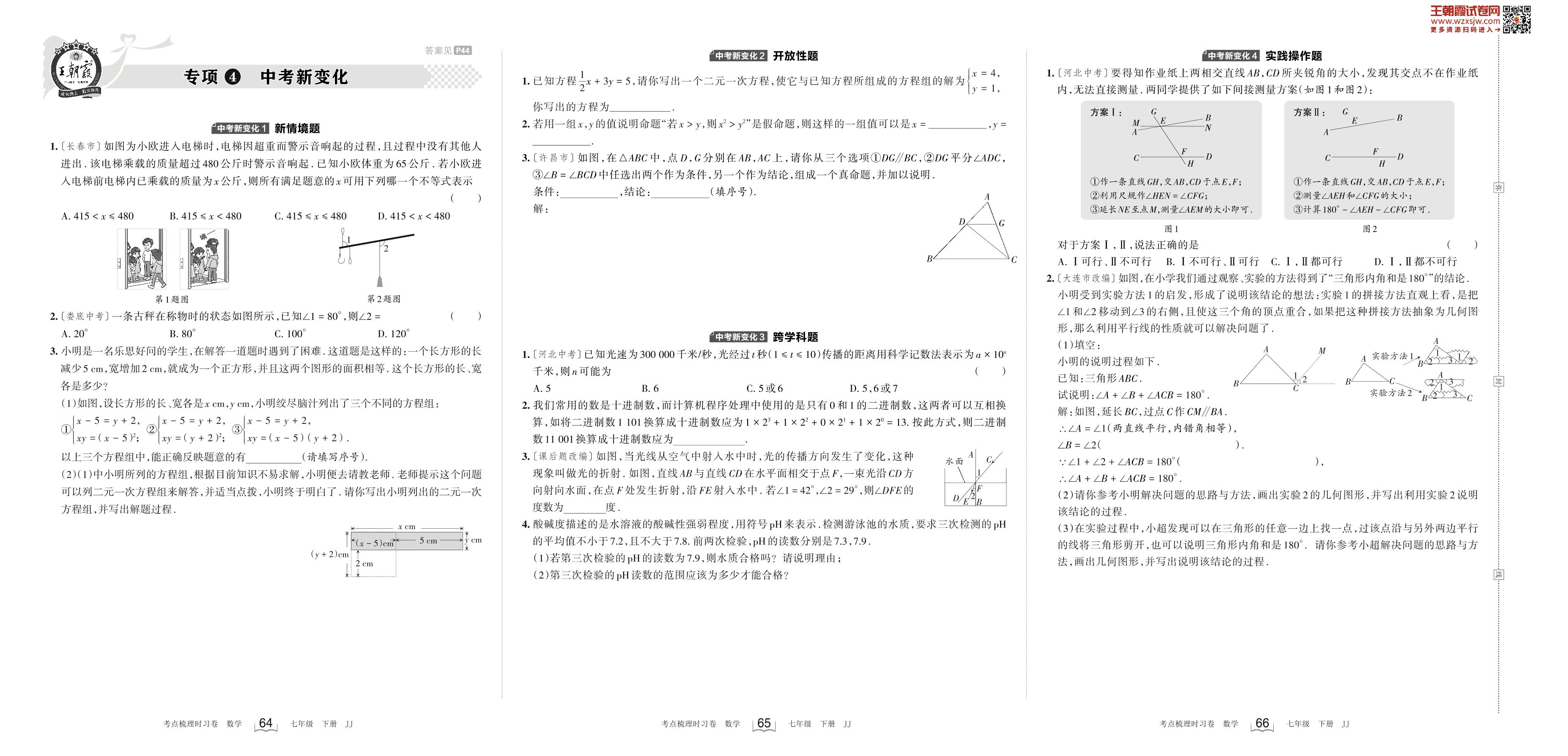 2023下册七年级数学冀教版 专项4 中考新变化