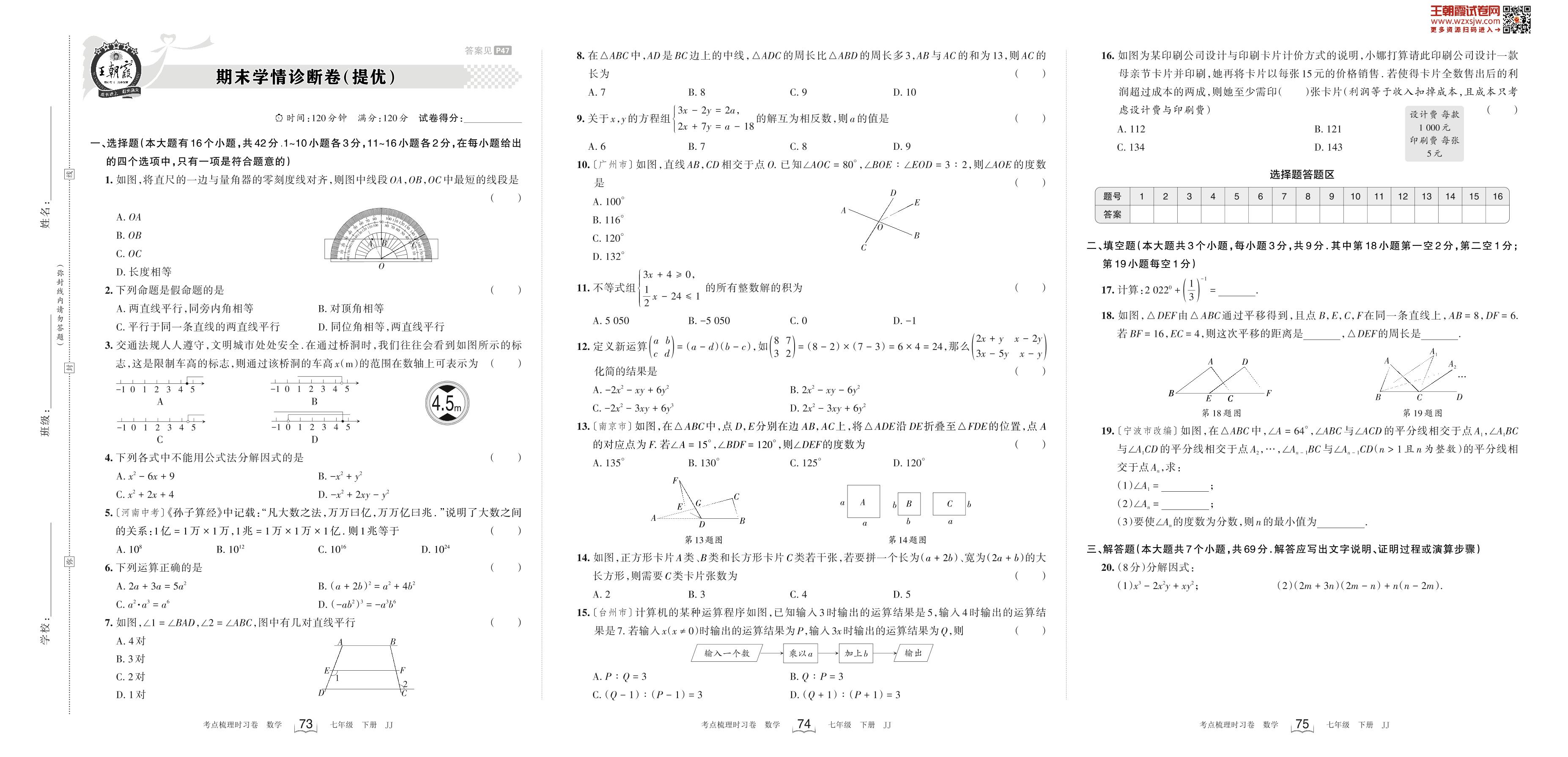 2023下册七年级数学冀教版 期末学情诊断卷(提优)