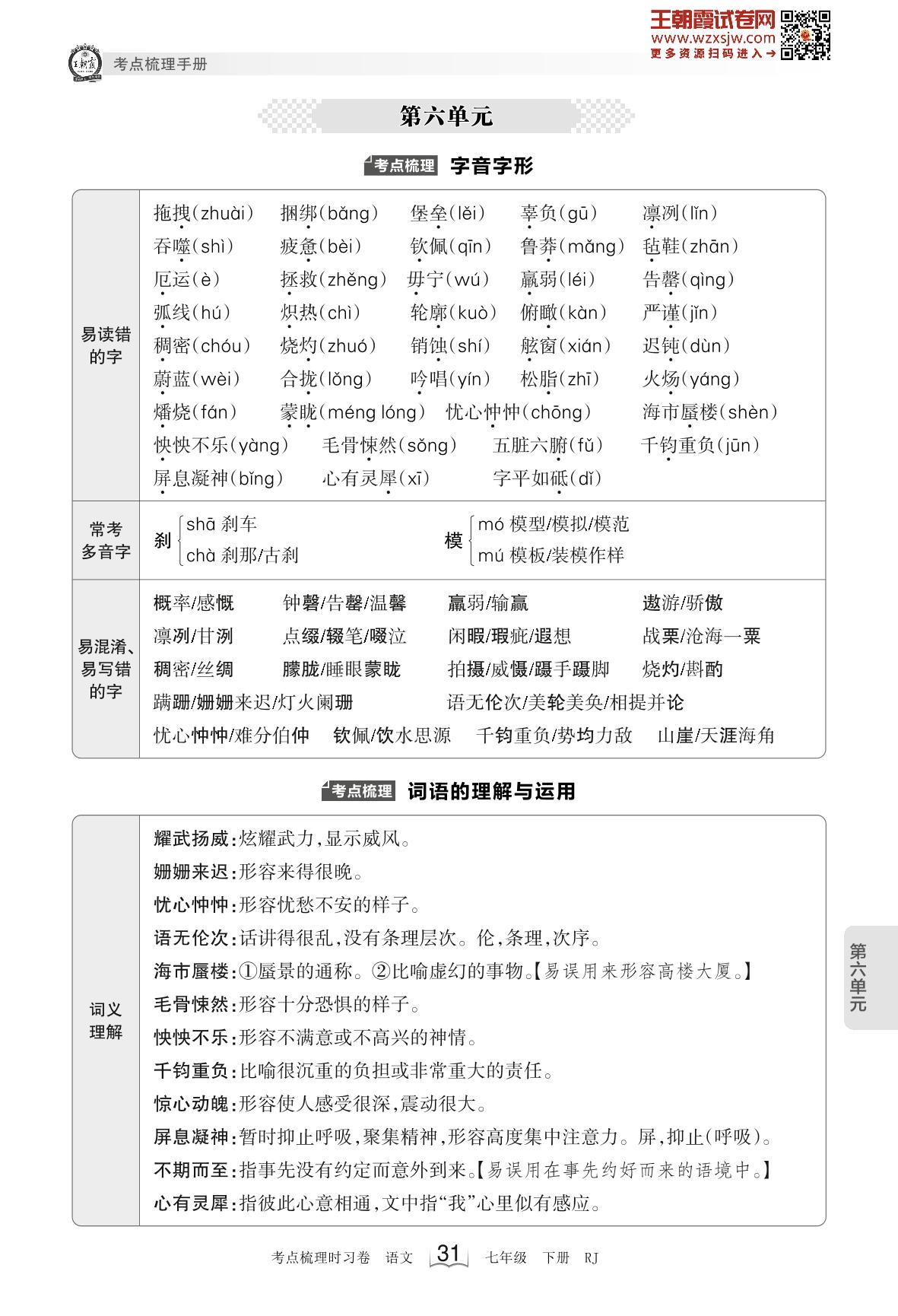 2023下册七年级语文人教版 考点梳理手册——第六单元