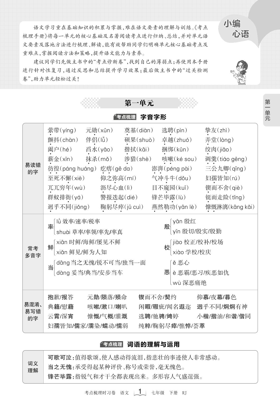 2023下册七年级语文人教版 考点梳理手册——第一单元