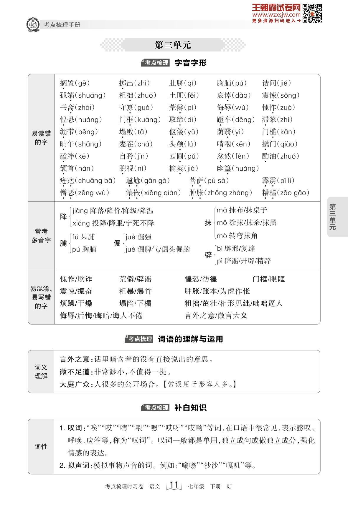 2023下册七年级语文人教版 考点梳理手册——第三单元