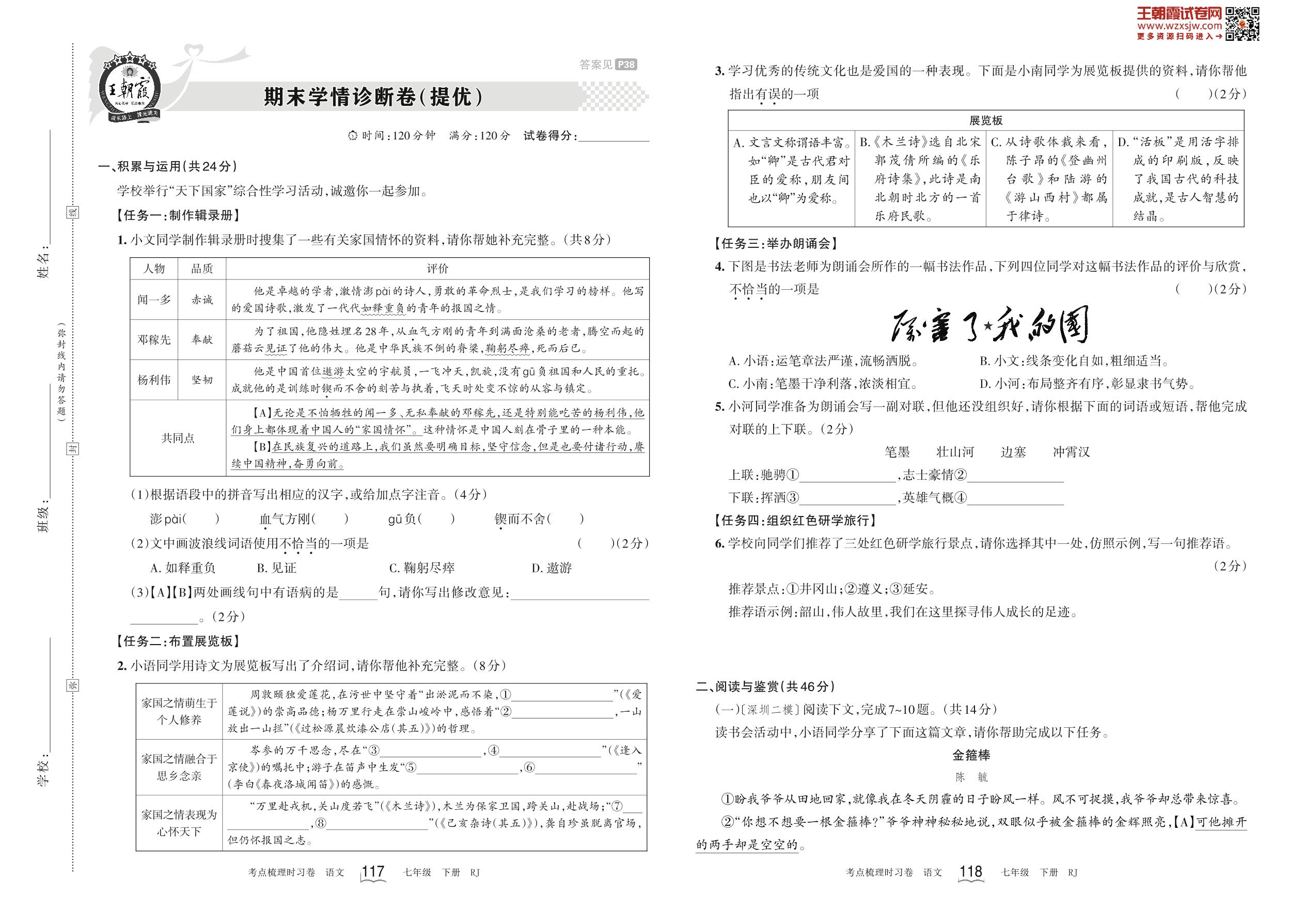 2023下册七年级语文人教版 期末学情诊断卷(提优)