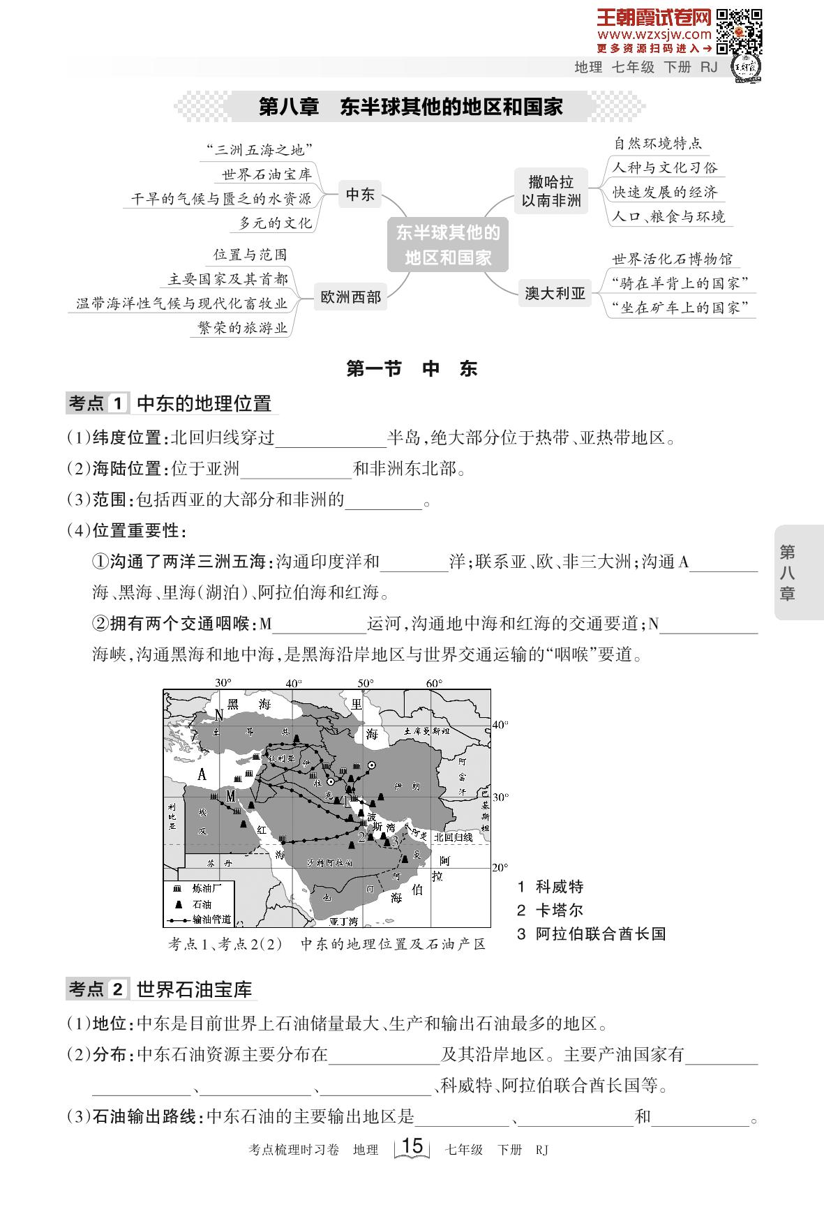 2023下册七年级地理人教版 考点梳理手册——第八章 东半球其他的地区和国家