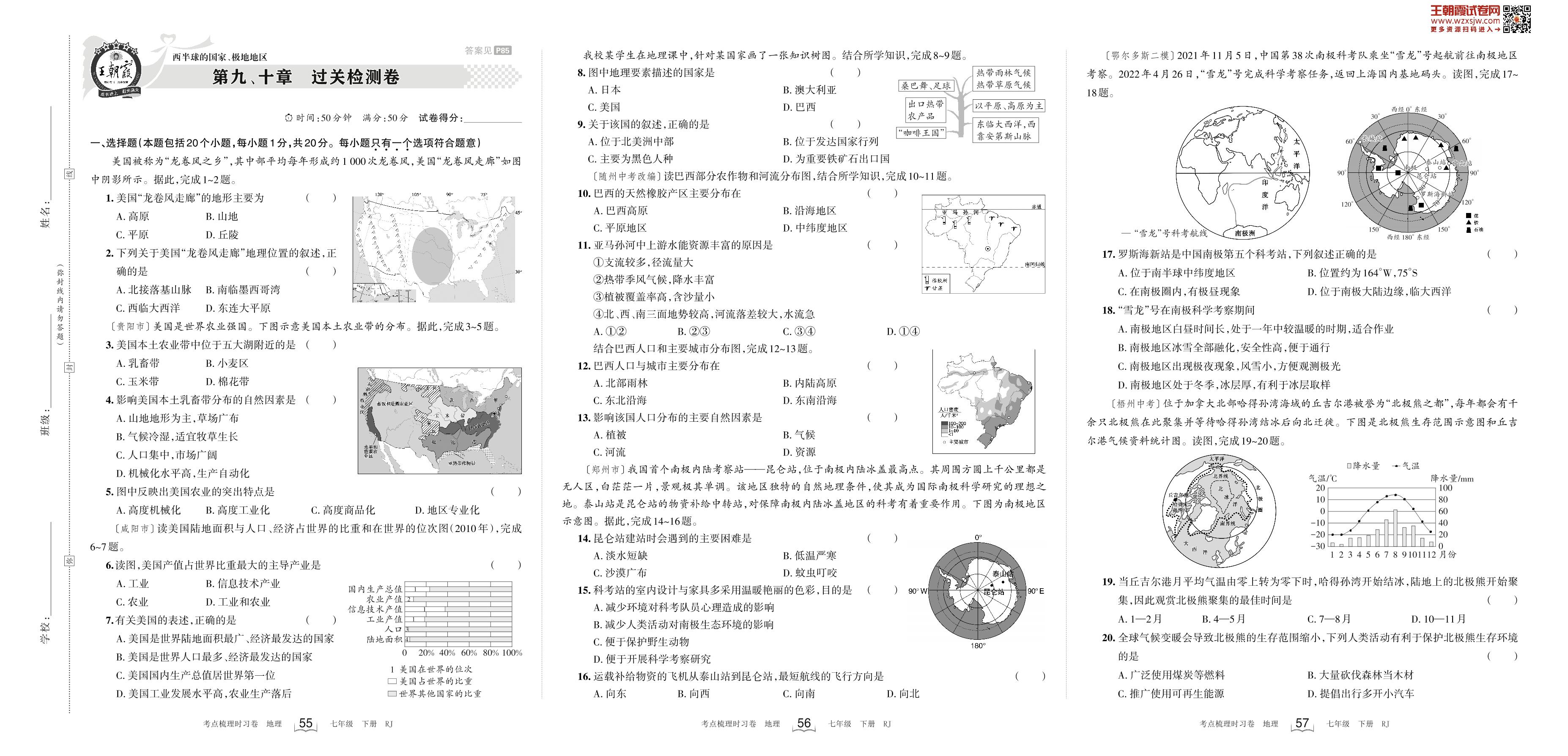 2023下册七年级地理人教版 第九、十章 过关检测卷