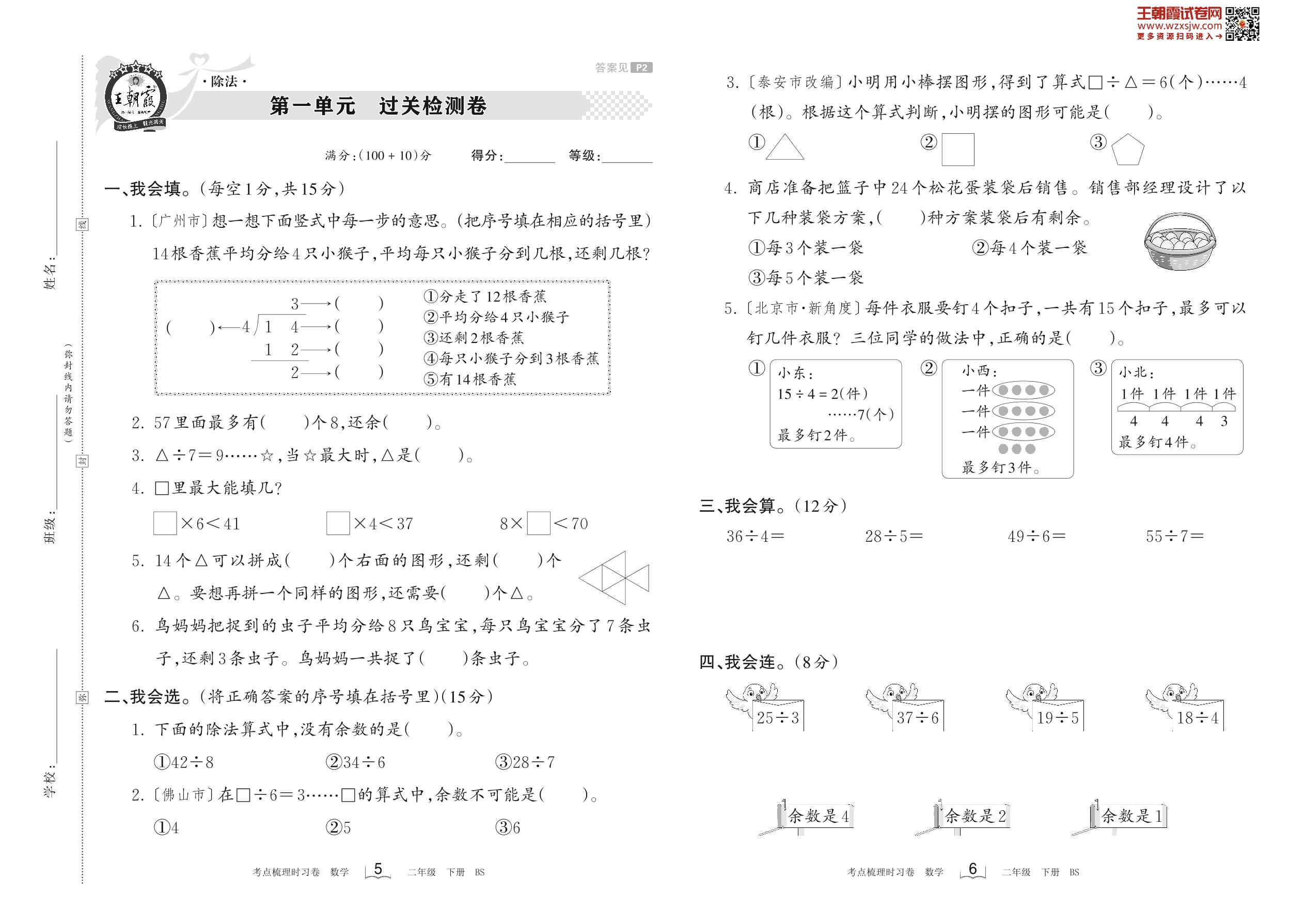 2023下册二年级数学北师版 第一单元 过关检测卷