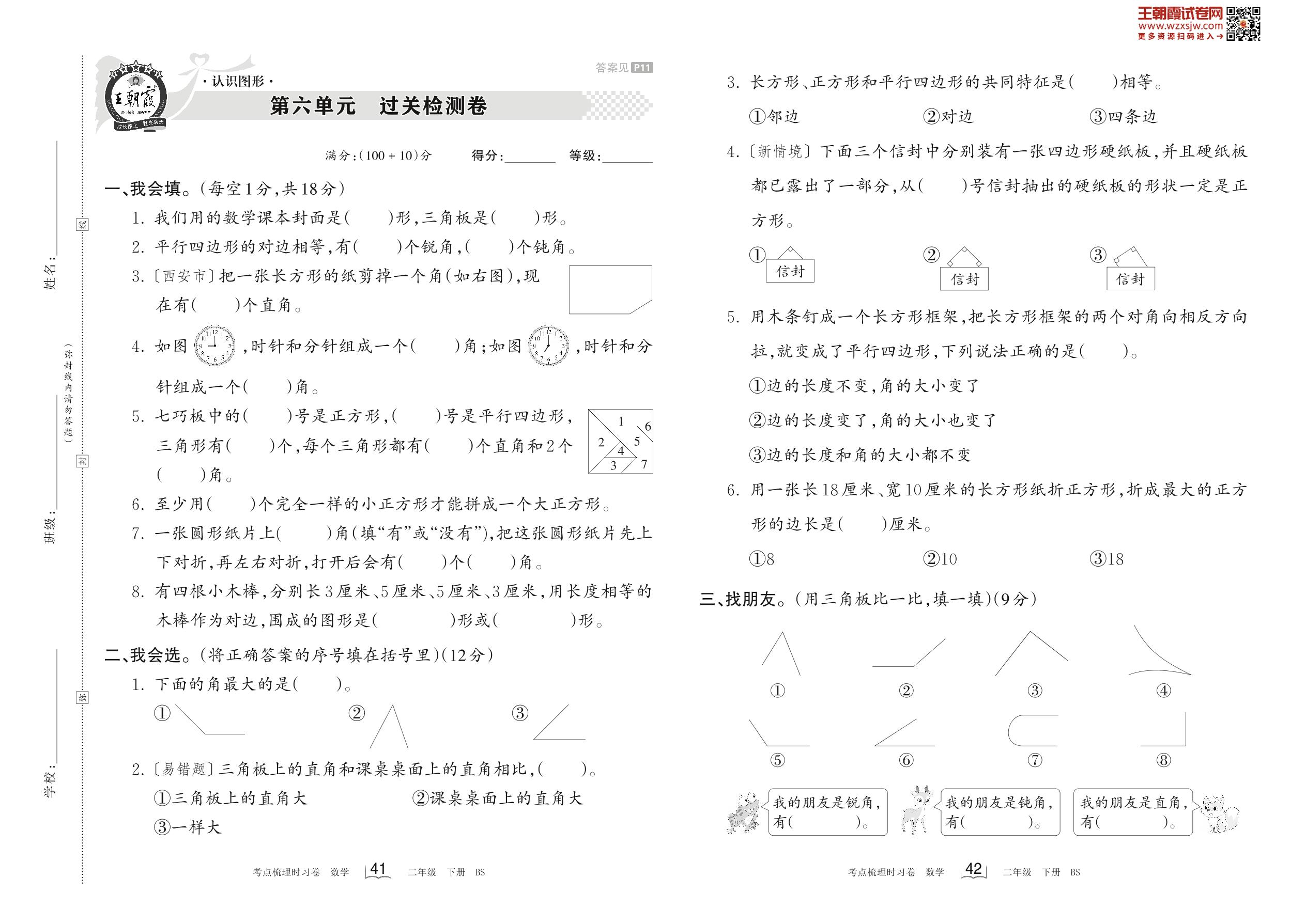 2023下册二年级数学北师版 第六单元 过关检测卷