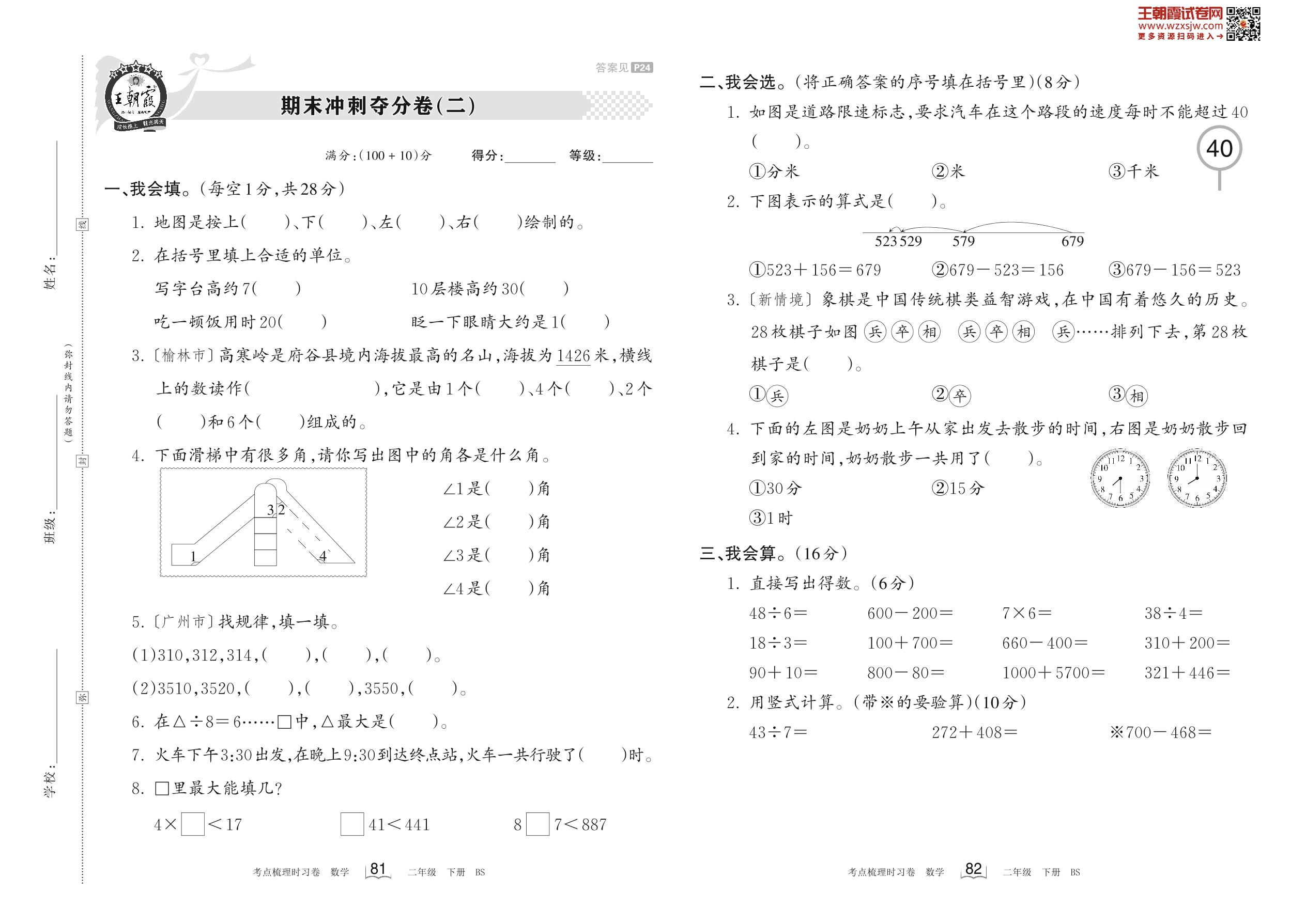 2023下册二年级数学北师版 期末冲刺夺分卷(二)