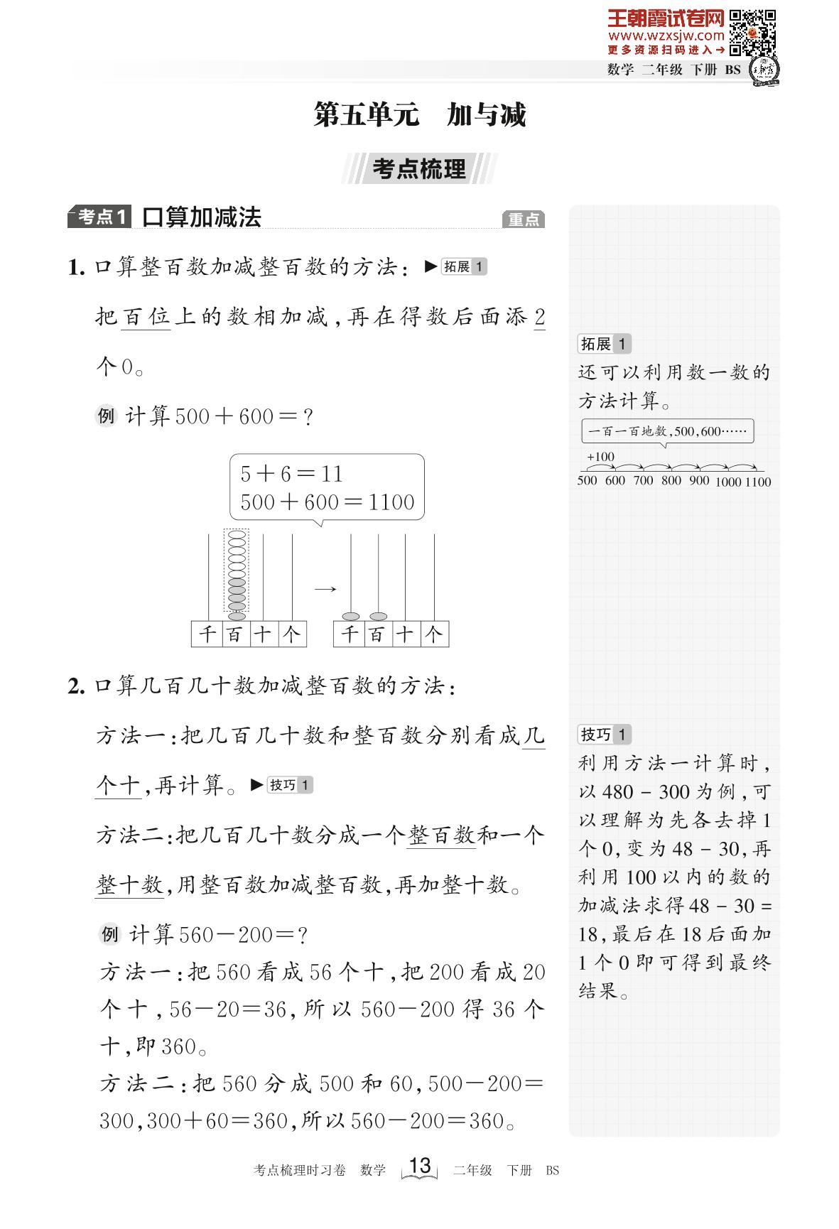 2023下册二年级数学北师版 考点梳理手册——第五单元 加与减