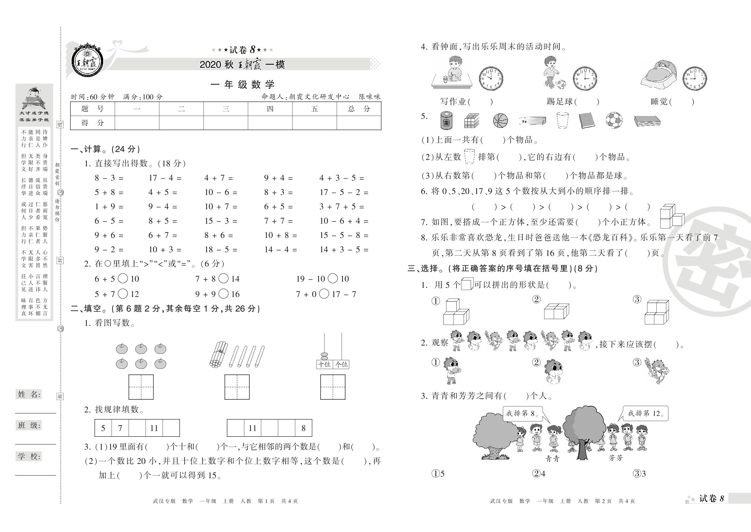 王朝霞期末模拟卷一年级上册数学(人教版)_R210802210949【8】