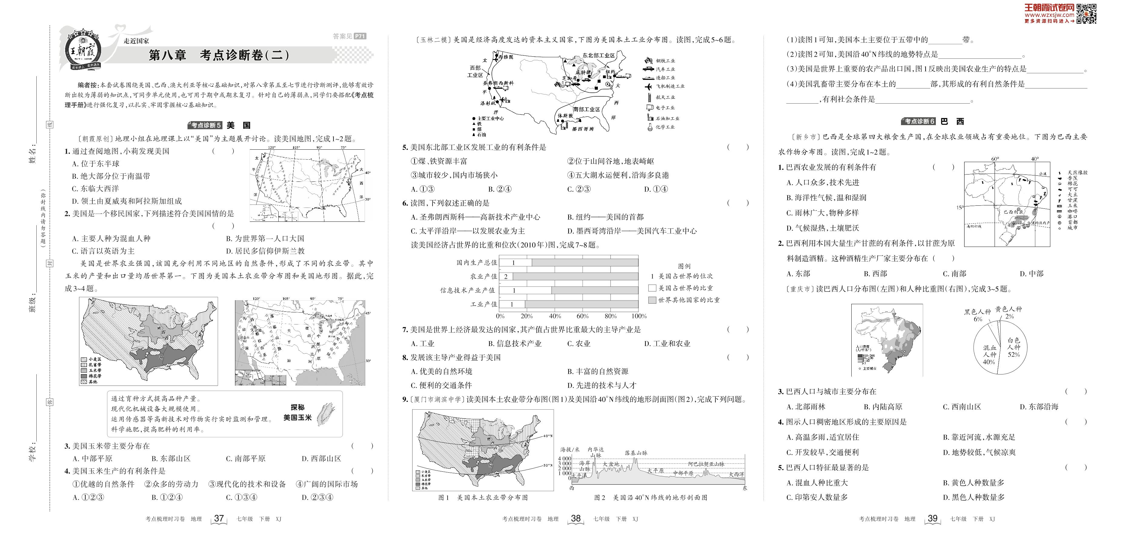 2023下册七年级地理湘教版 第八章 考点诊断卷(二)