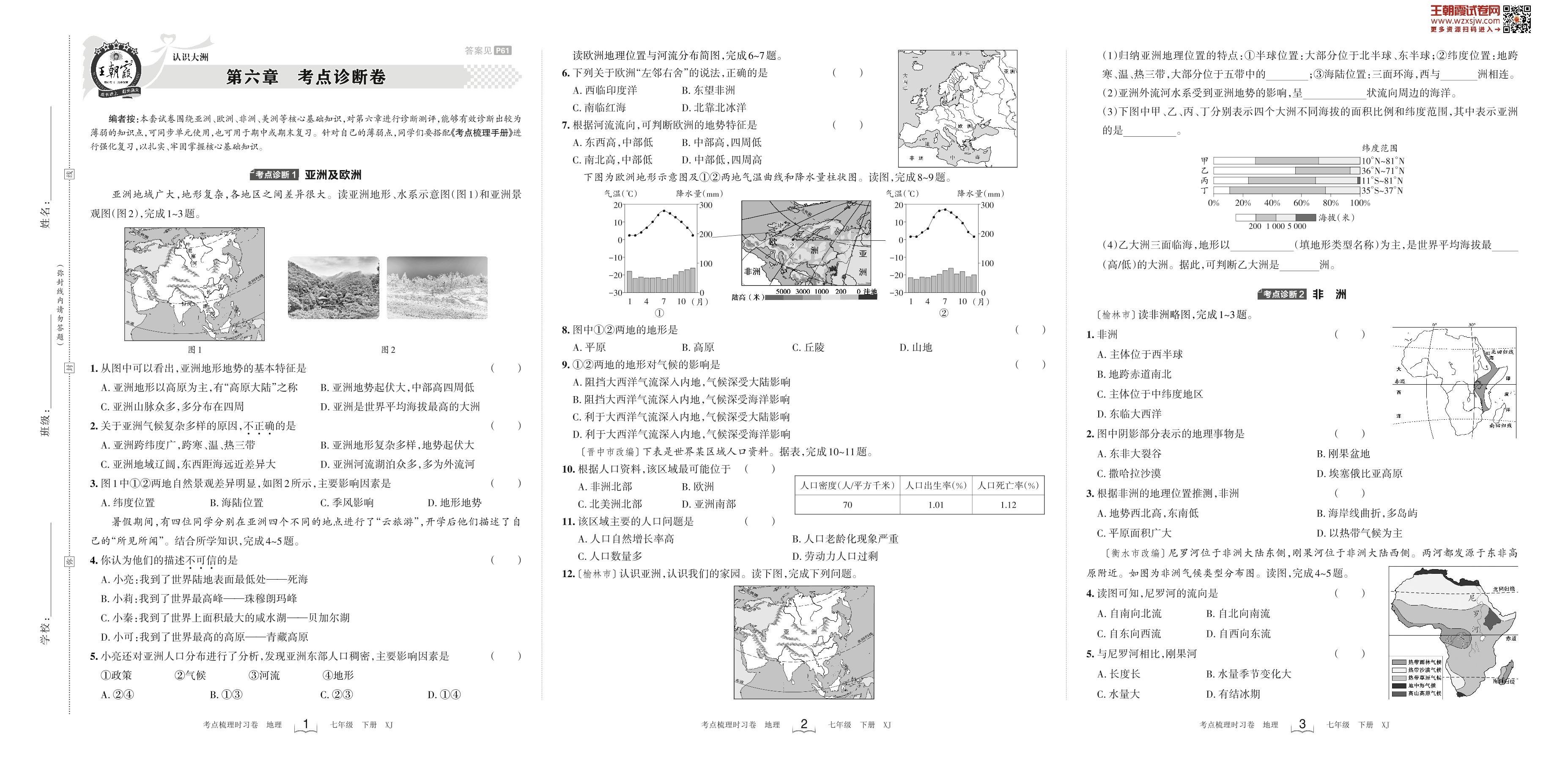 2023下册七年级地理湘教版 第六章 考点诊断卷