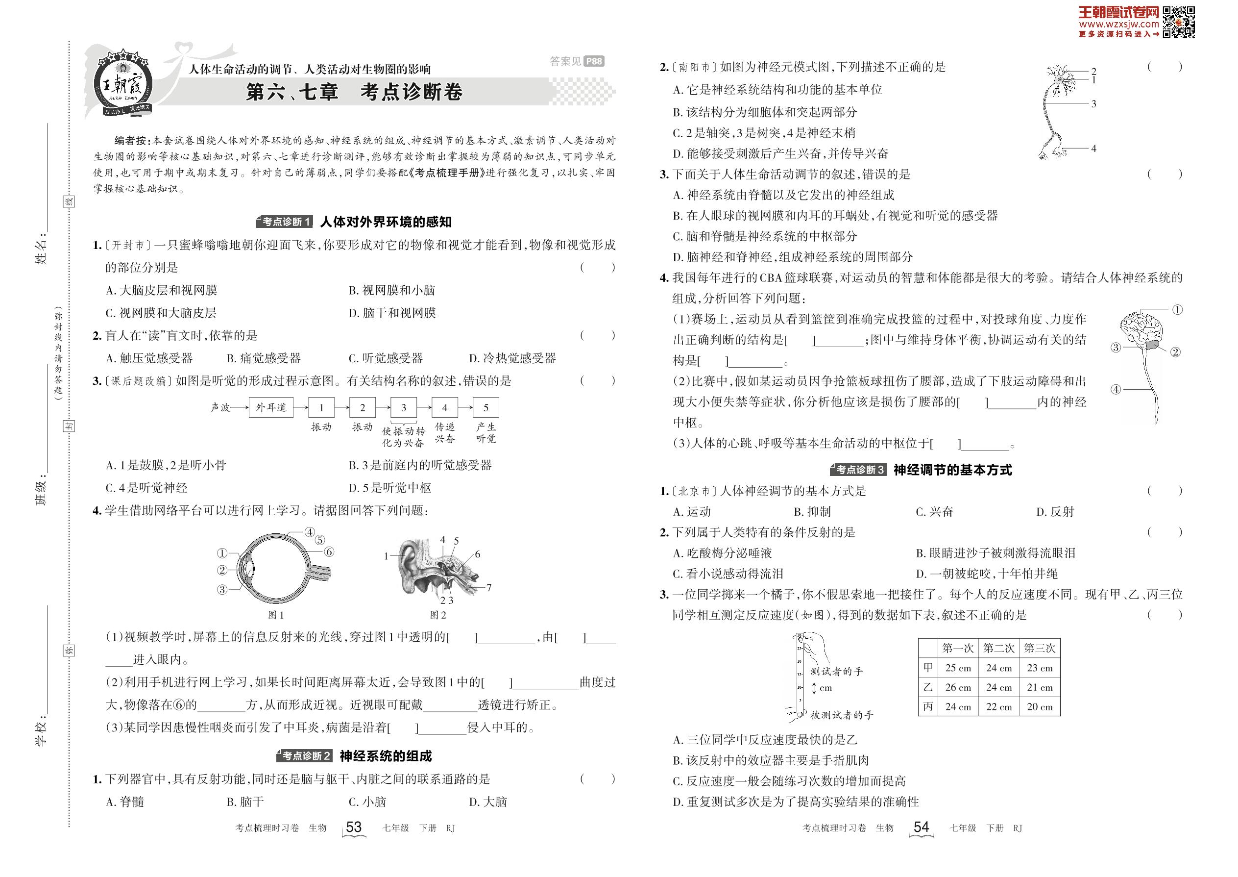 2023下册七年级生物人教版 第六、七章 考点诊断卷