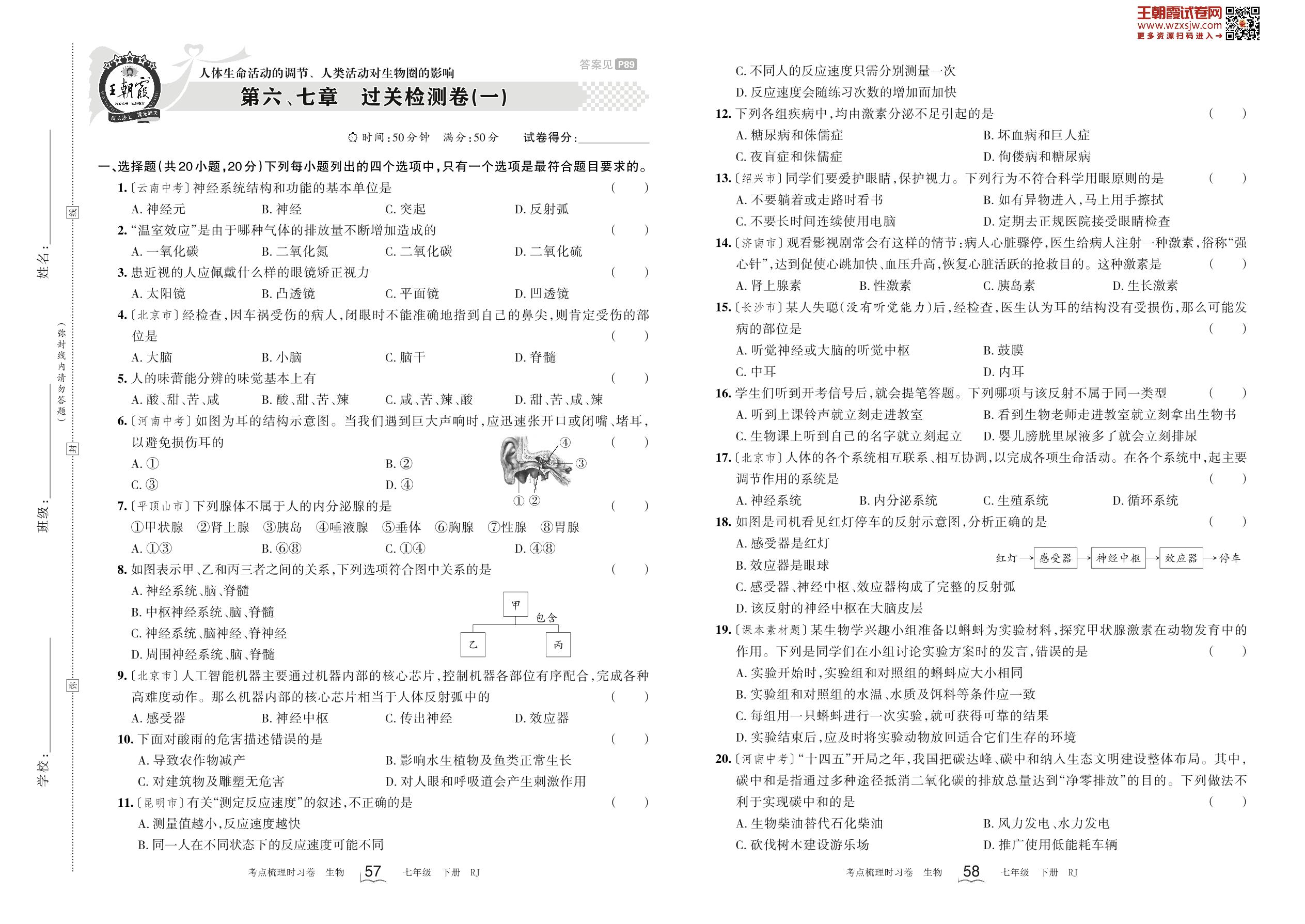 2023下册七年级生物人教版 第六、七章 过关检测卷(一)