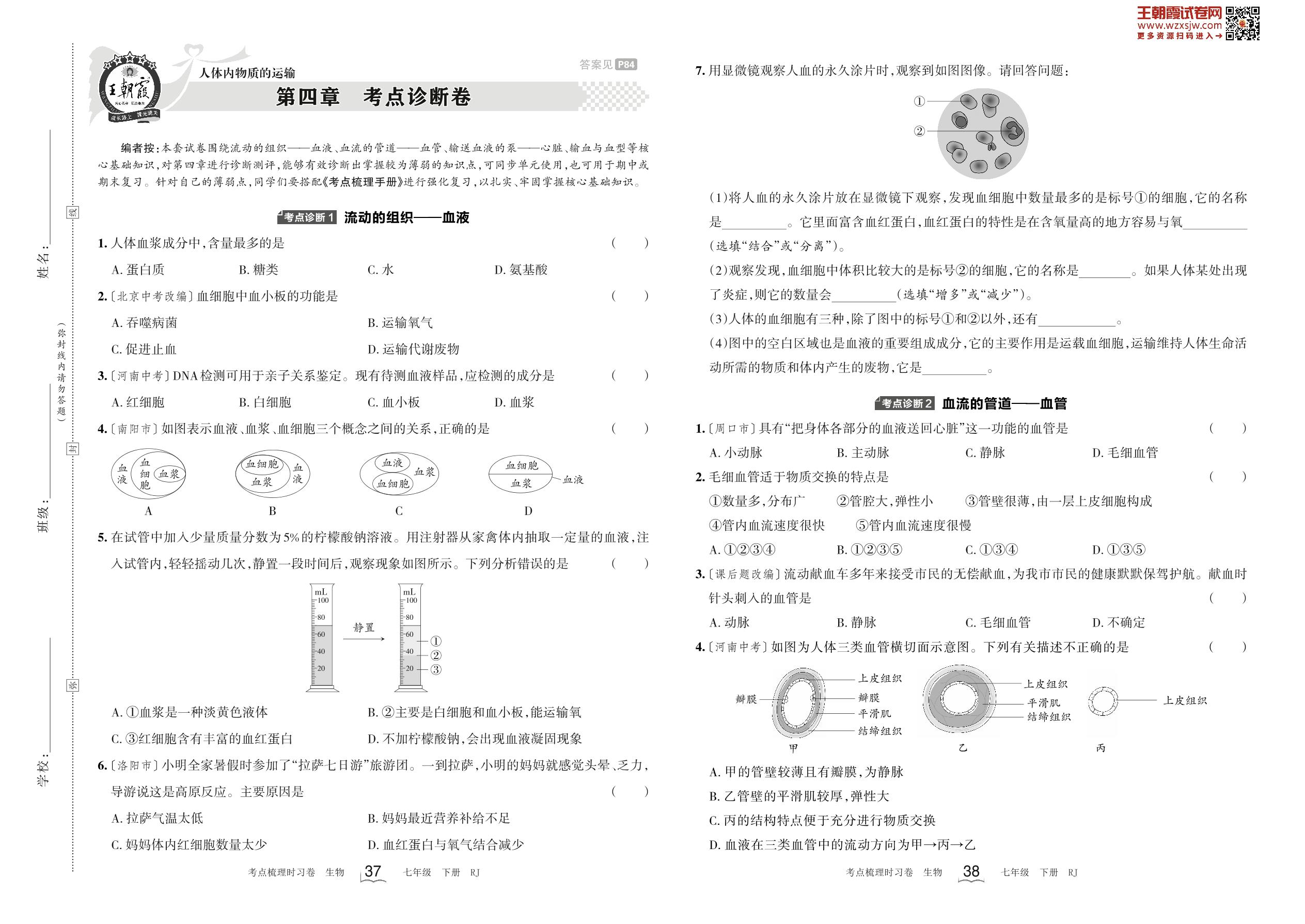 2023下册七年级生物人教版 第四章 考点诊断卷
