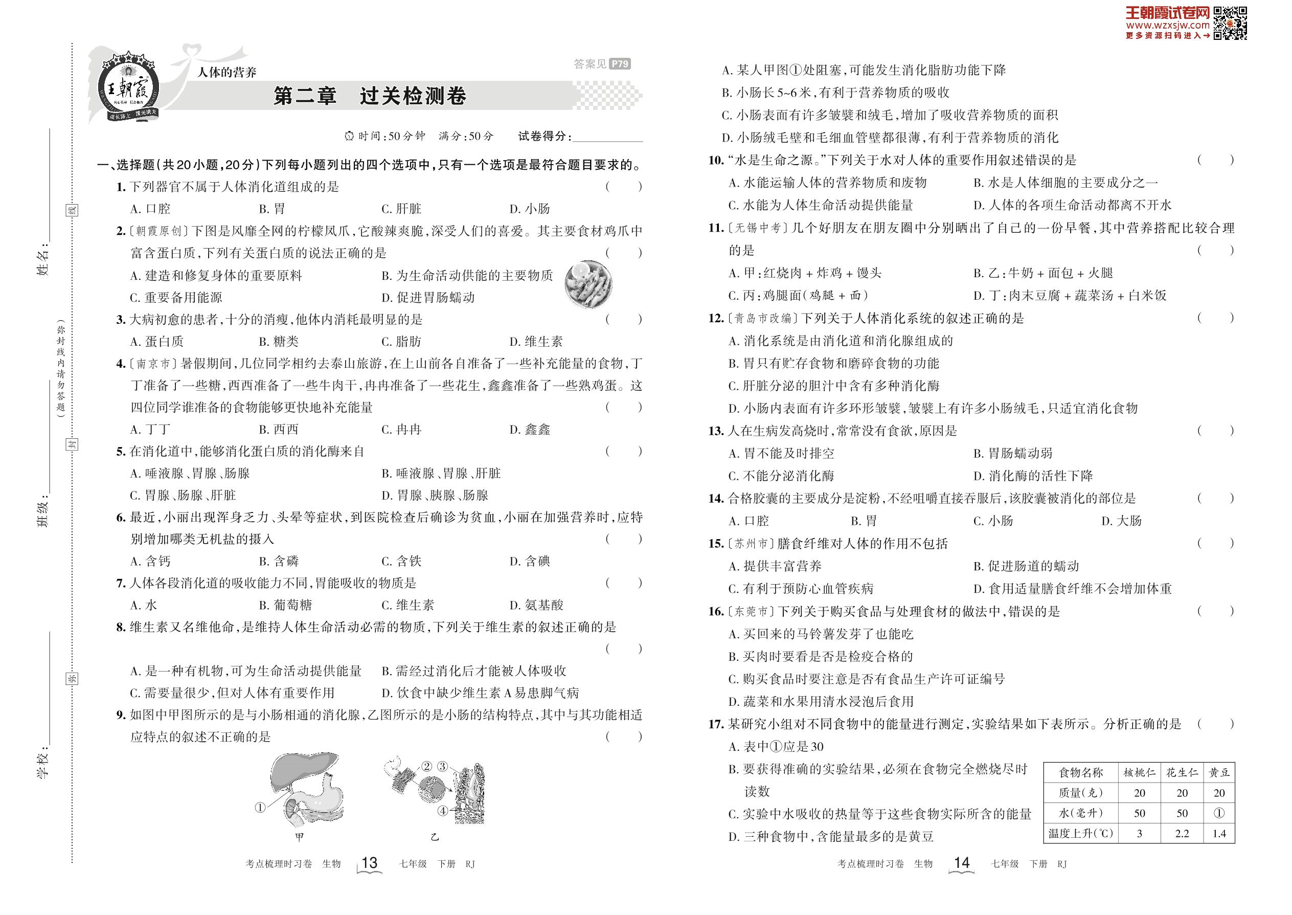 七年级生物人教版下册单元卷