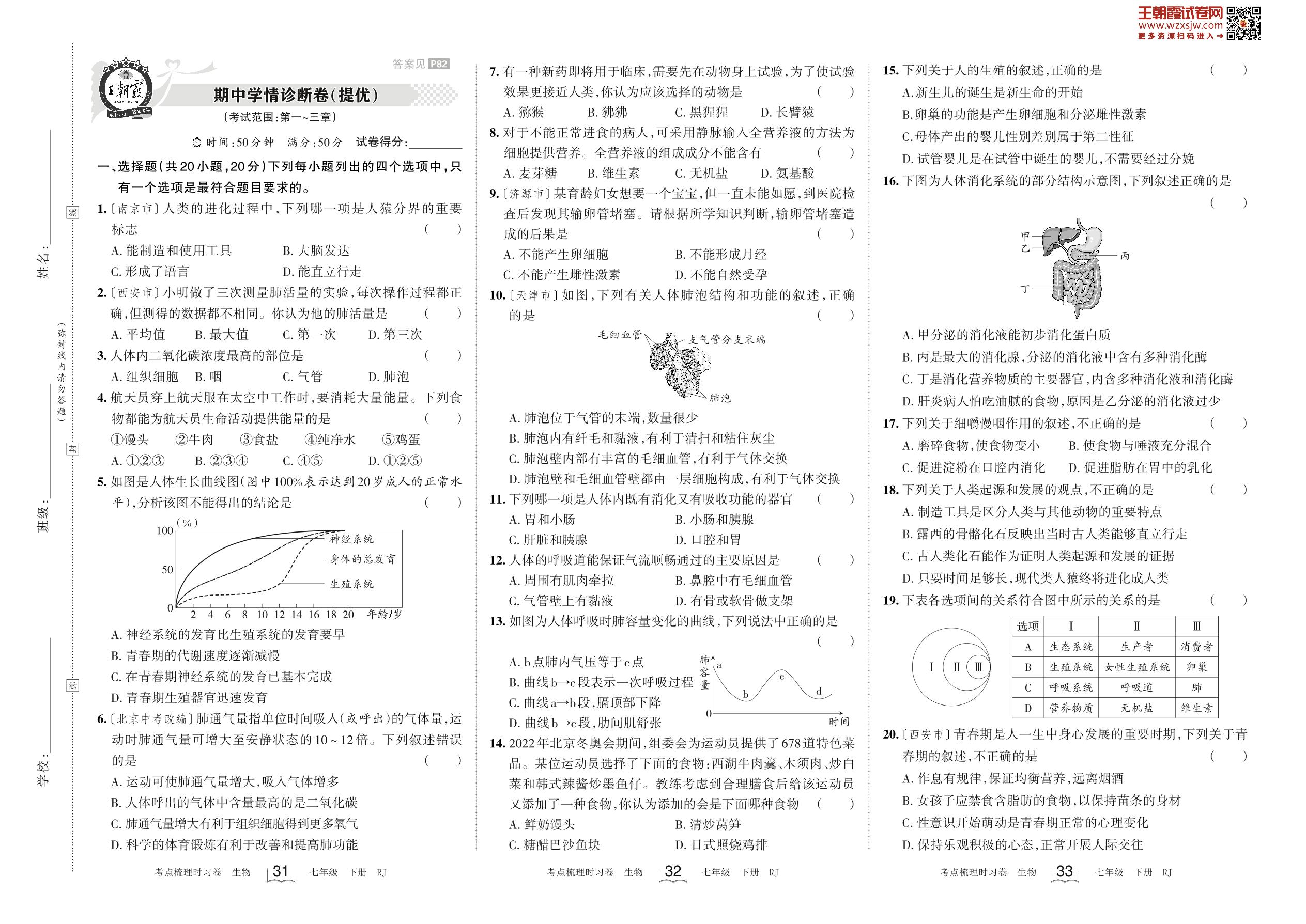 2023下册七年级生物人教版 期中学情诊断卷(提优)