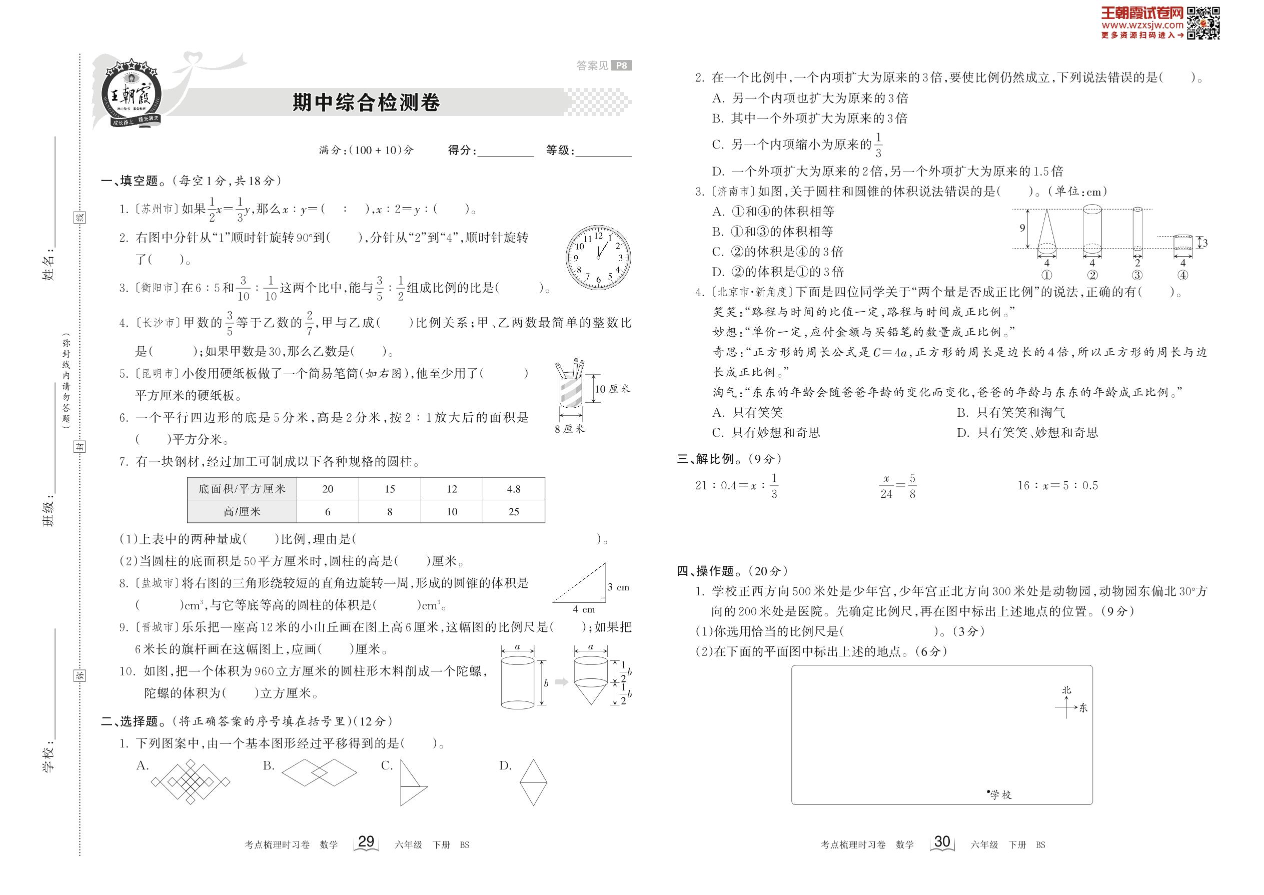 2023下册六年级数学北师版 期中综合检测卷