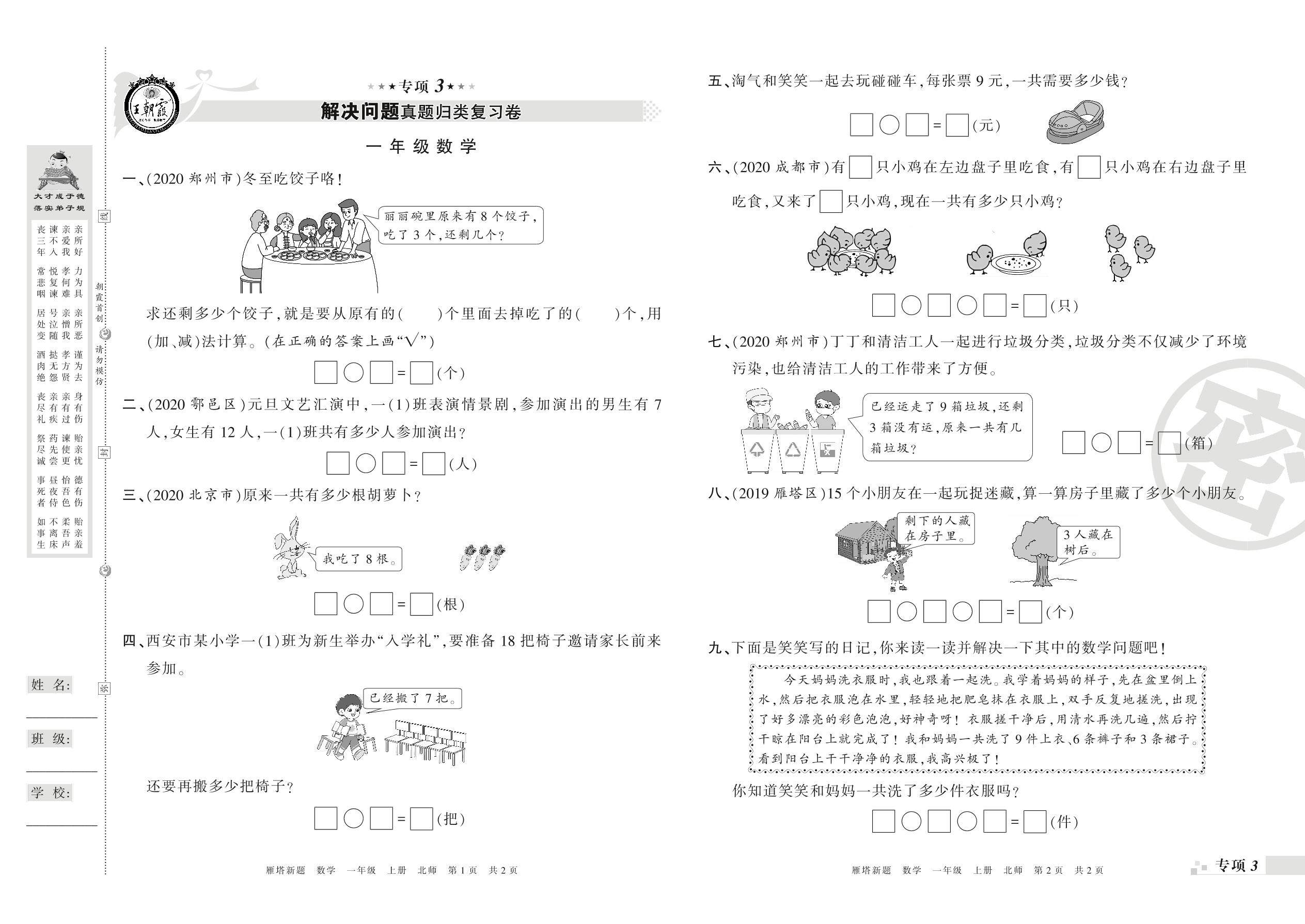 王朝霞期末专项卷——解决问题真题归类复习、新颖题速递:生活与数学一年级上册数学(北师版)_R210802211018【0】