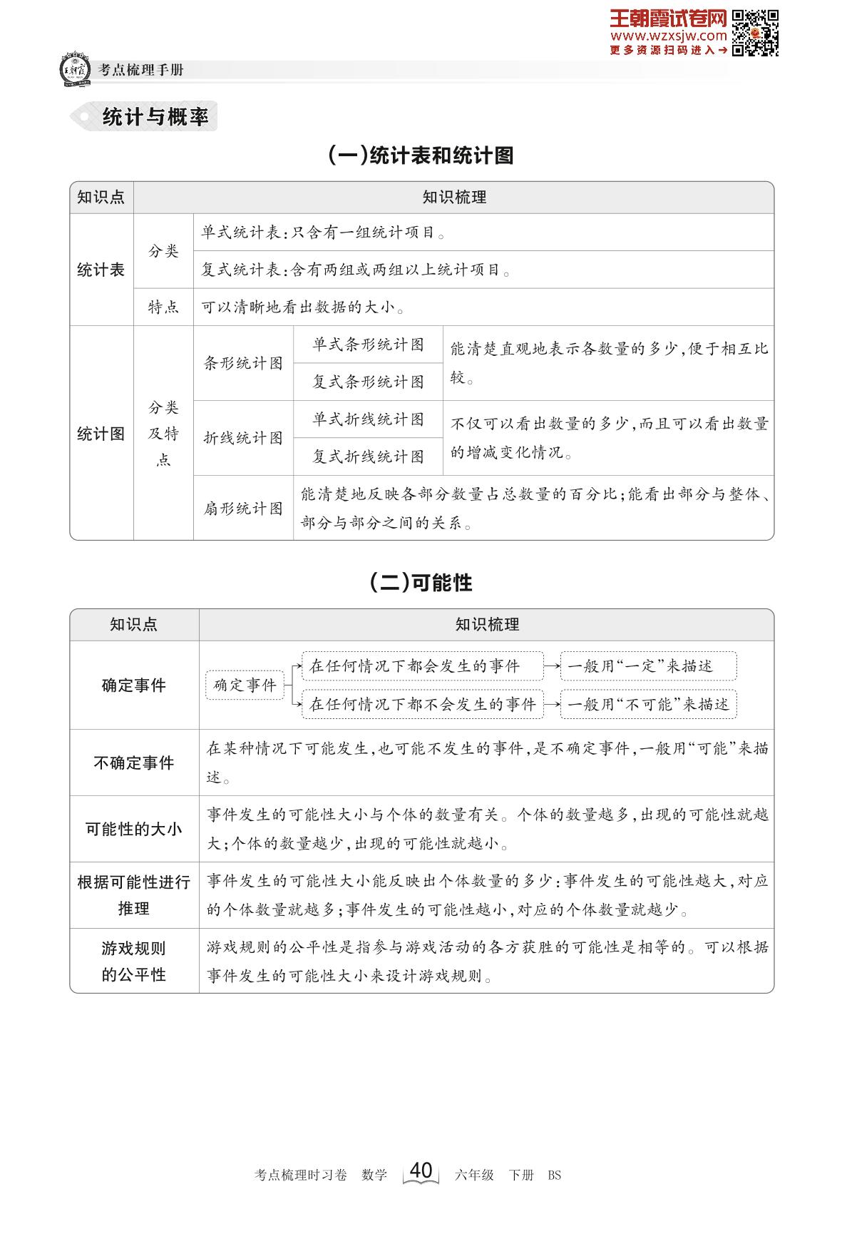 2023下册六年级数学北师版 考点梳理手册——总复习 统计与概率