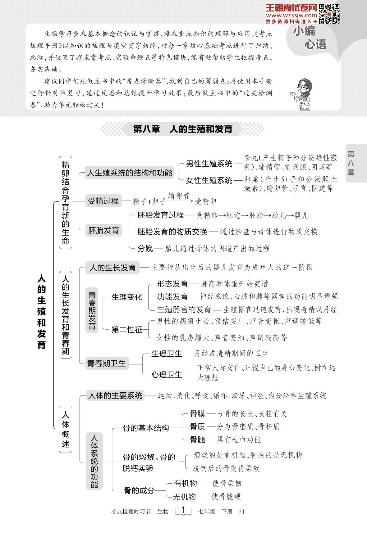 2023下册七年级生物苏教版 考点梳理手册——第八章 人的生殖和发育
