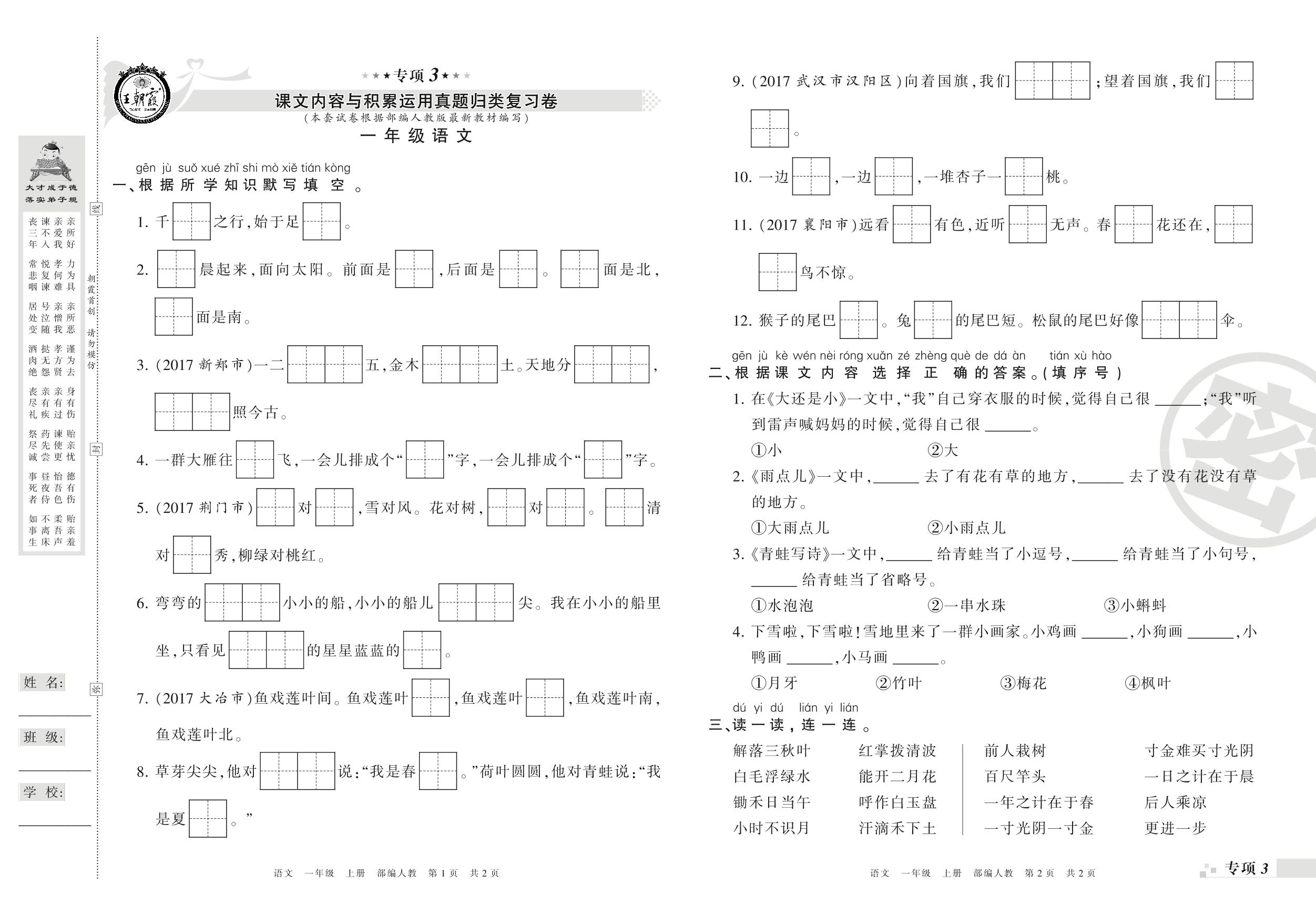 一年级语文人教版上册专项卷