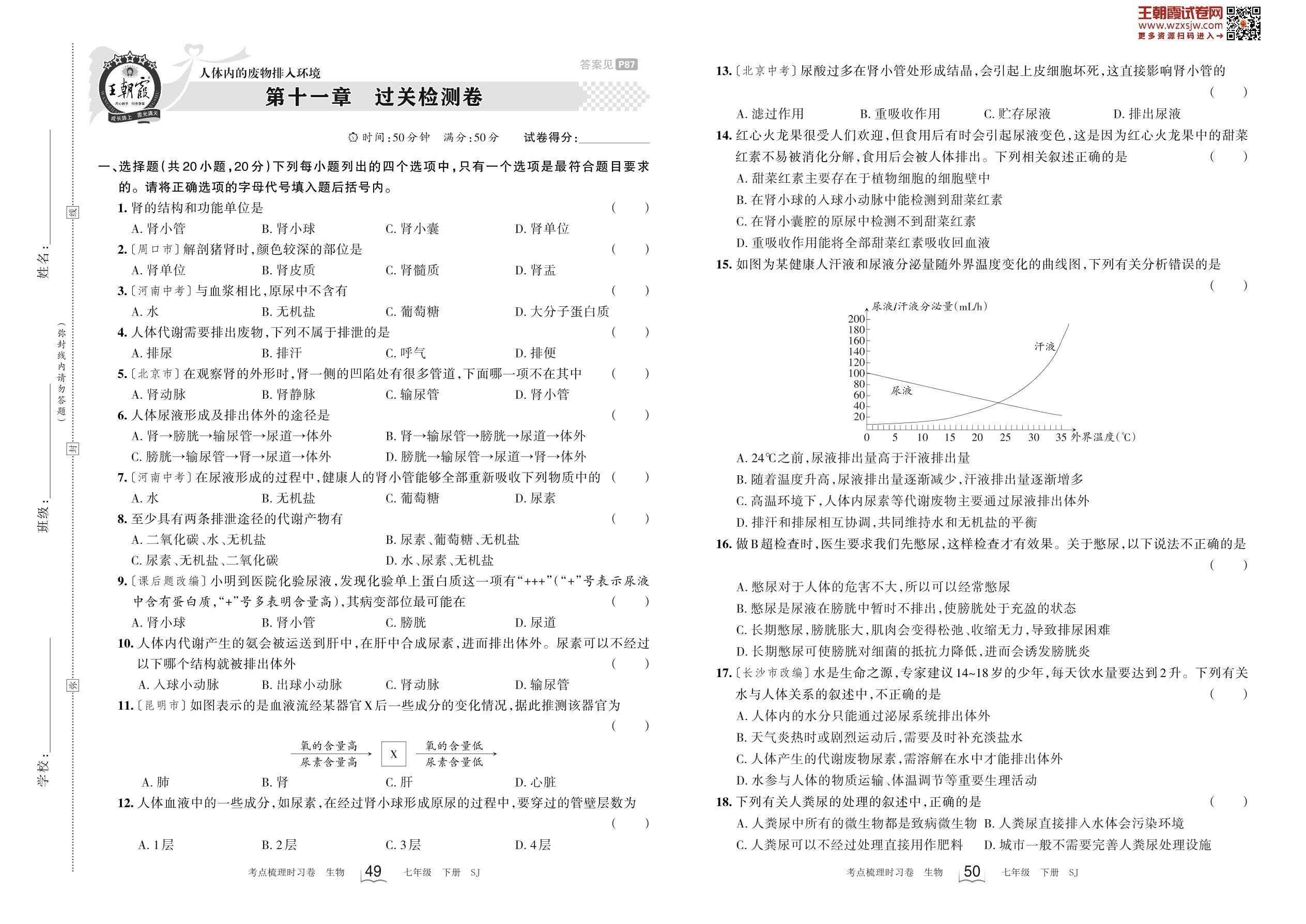 2023下册七年级生物苏教版 第十一章 过关检测卷