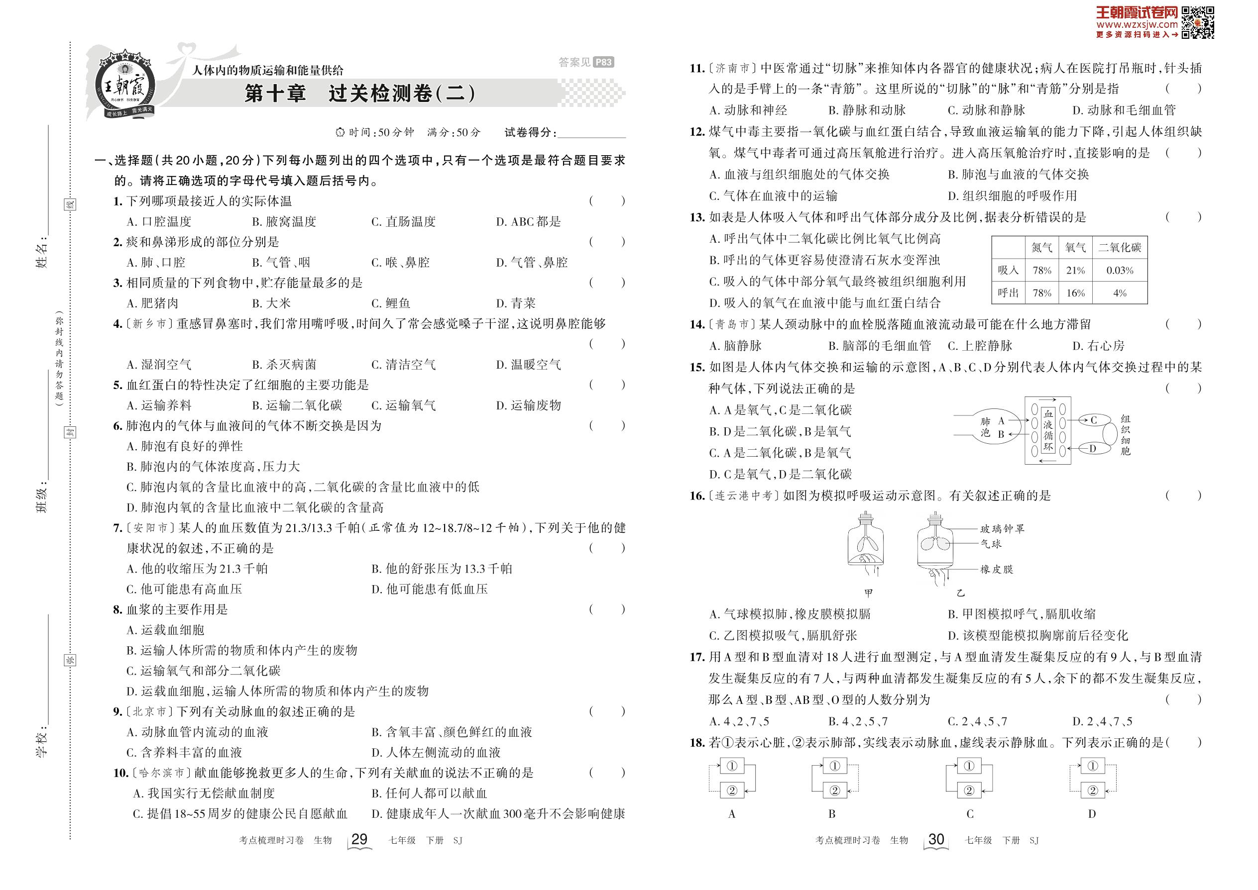 2023下册七年级生物苏教版 第十章 过关检测卷(二)