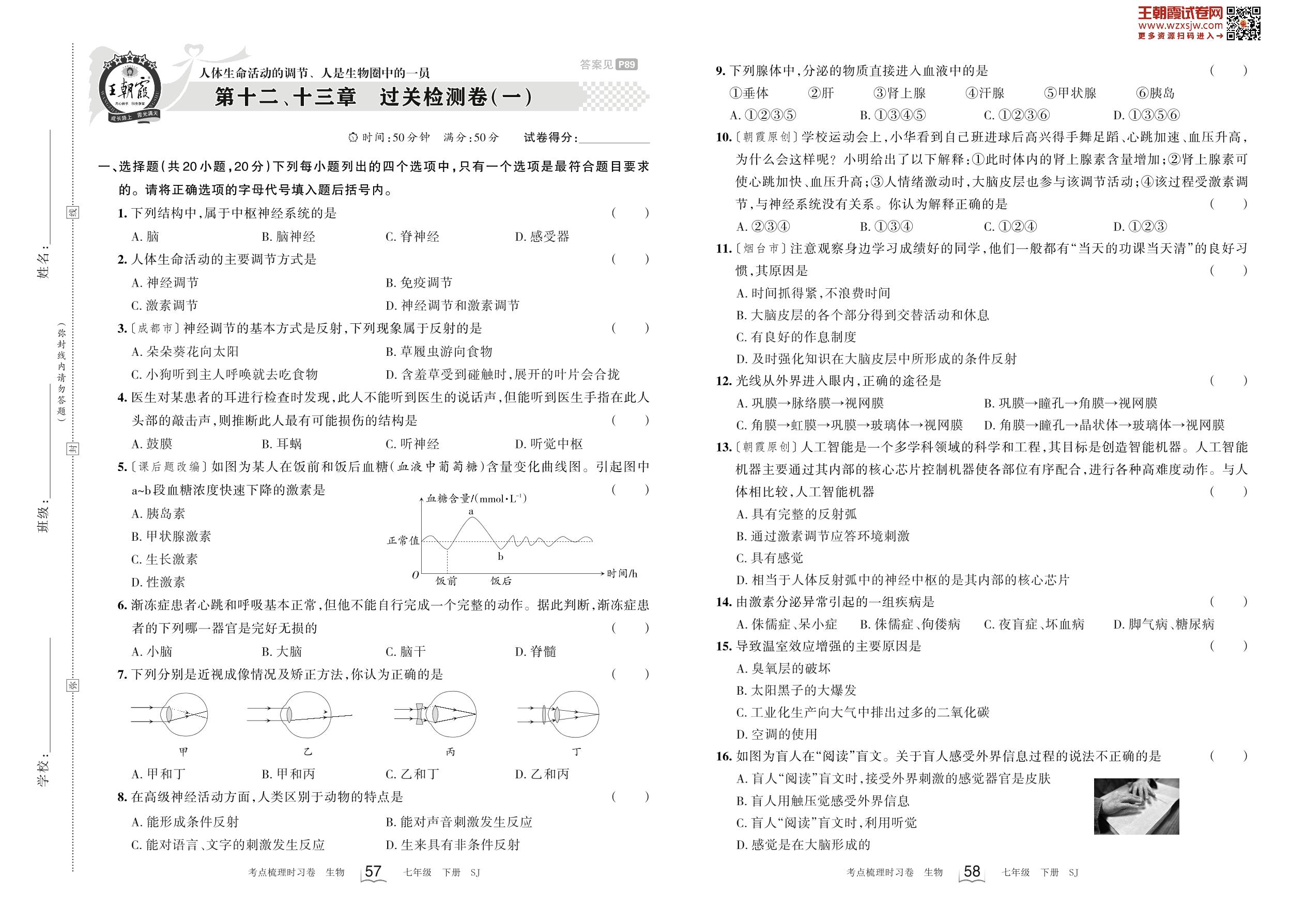 七年级生物苏教版下册单元卷