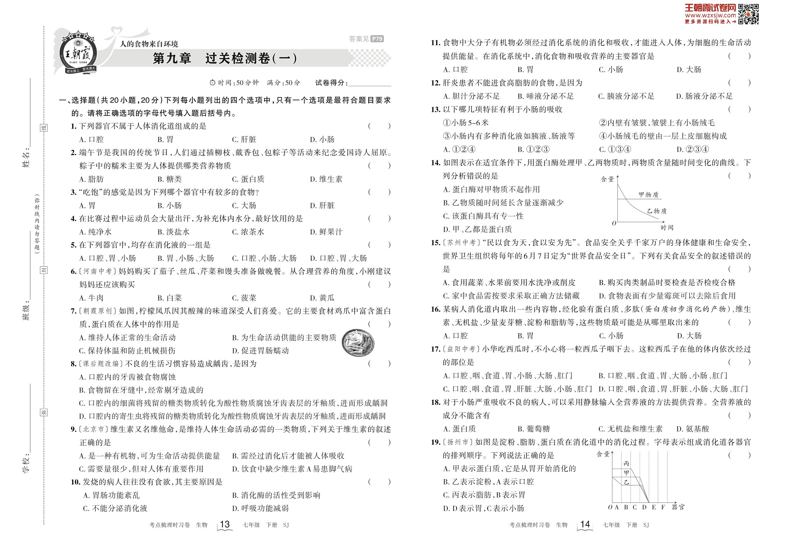 2023下册七年级生物苏教版 第九章 过关检测卷(一)