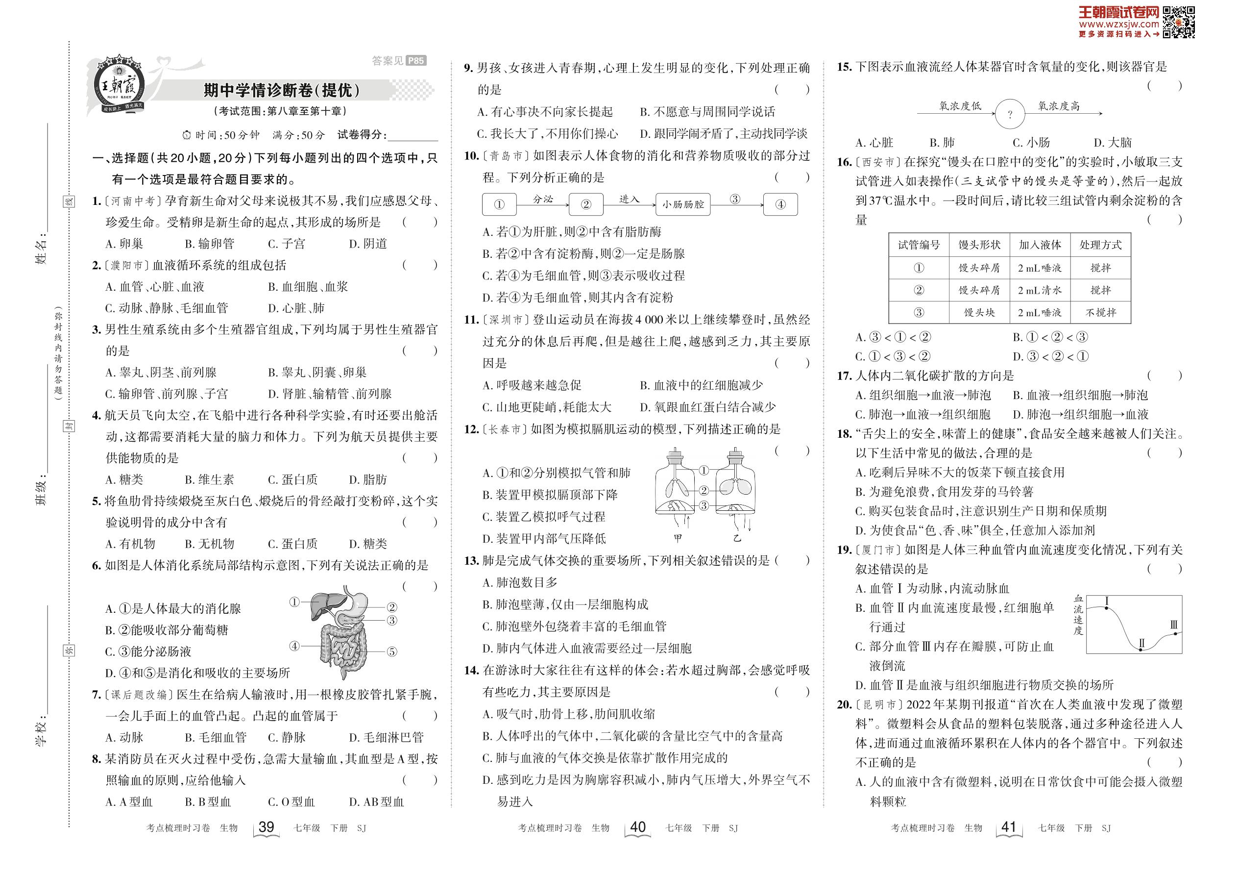 2023下册七年级生物苏教版 期中学情诊断卷(提优)