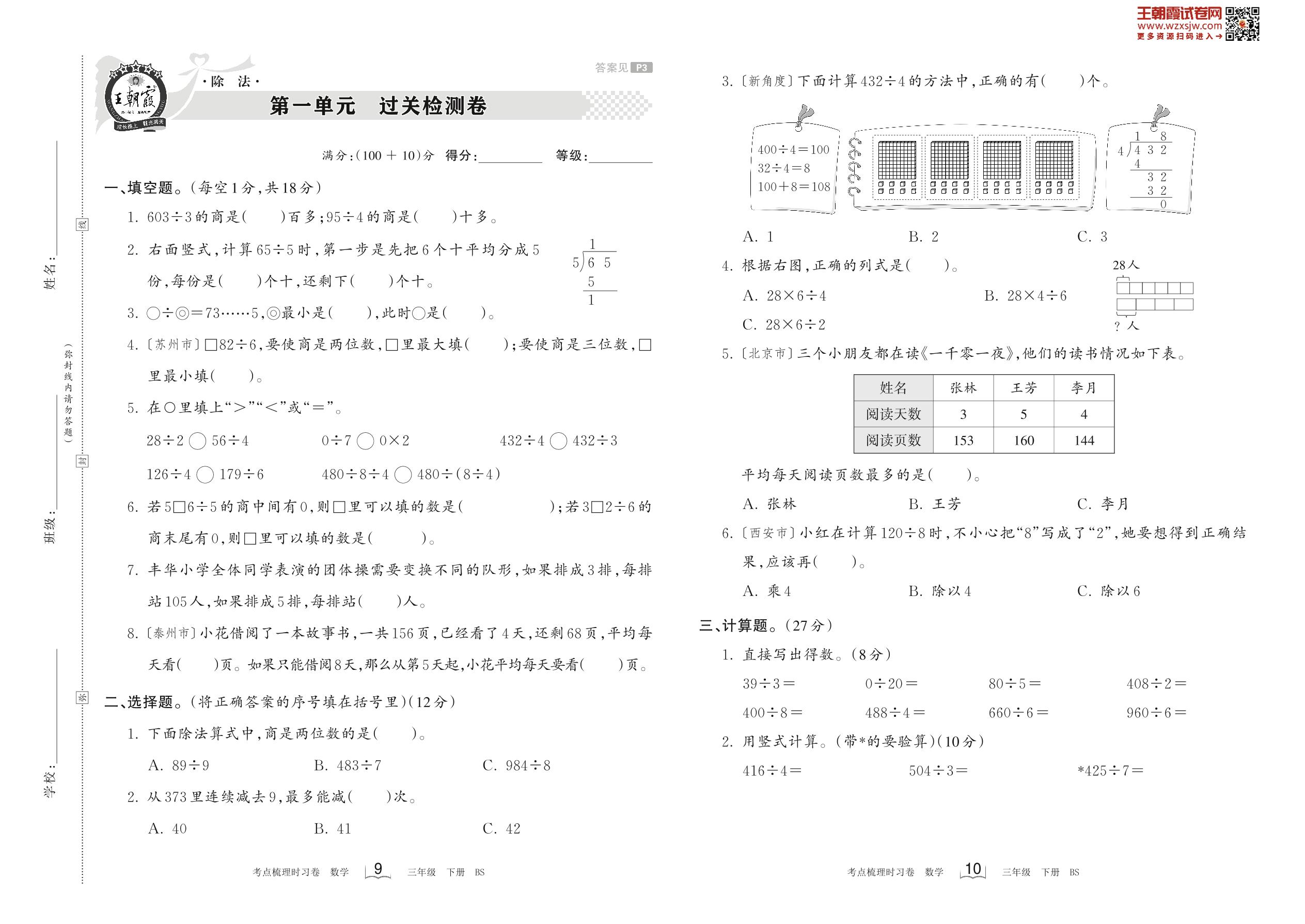 2023下册三年级数学北师版 第一单元 过关检测卷