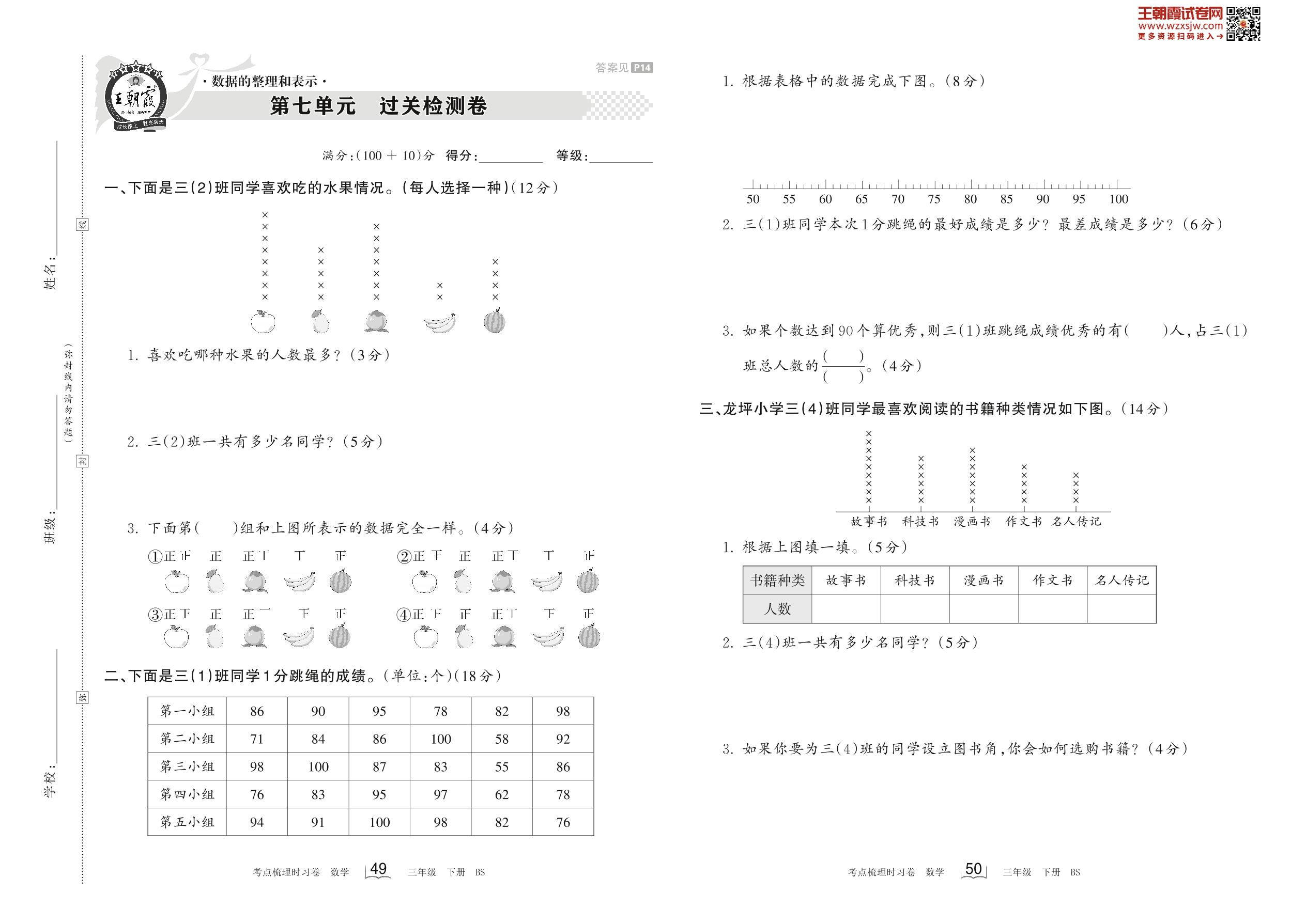 三年级数学北师版下册单元卷