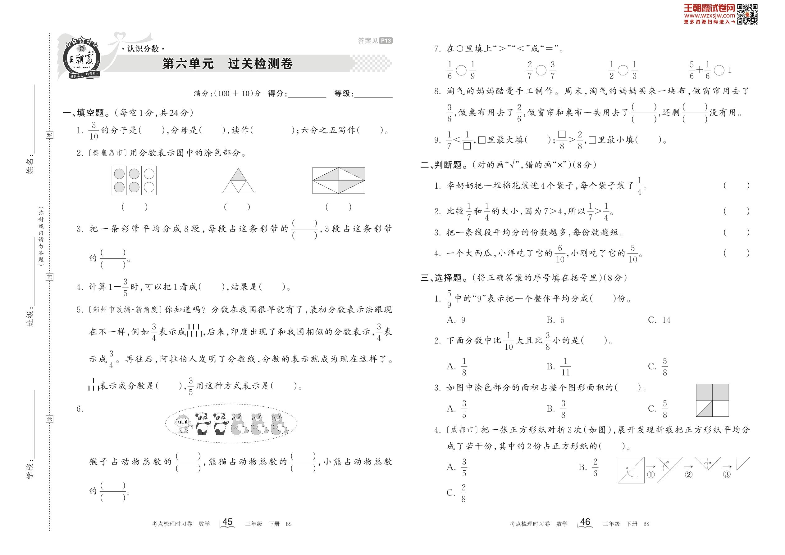 2023下册三年级数学北师版 第六单元 过关检测卷