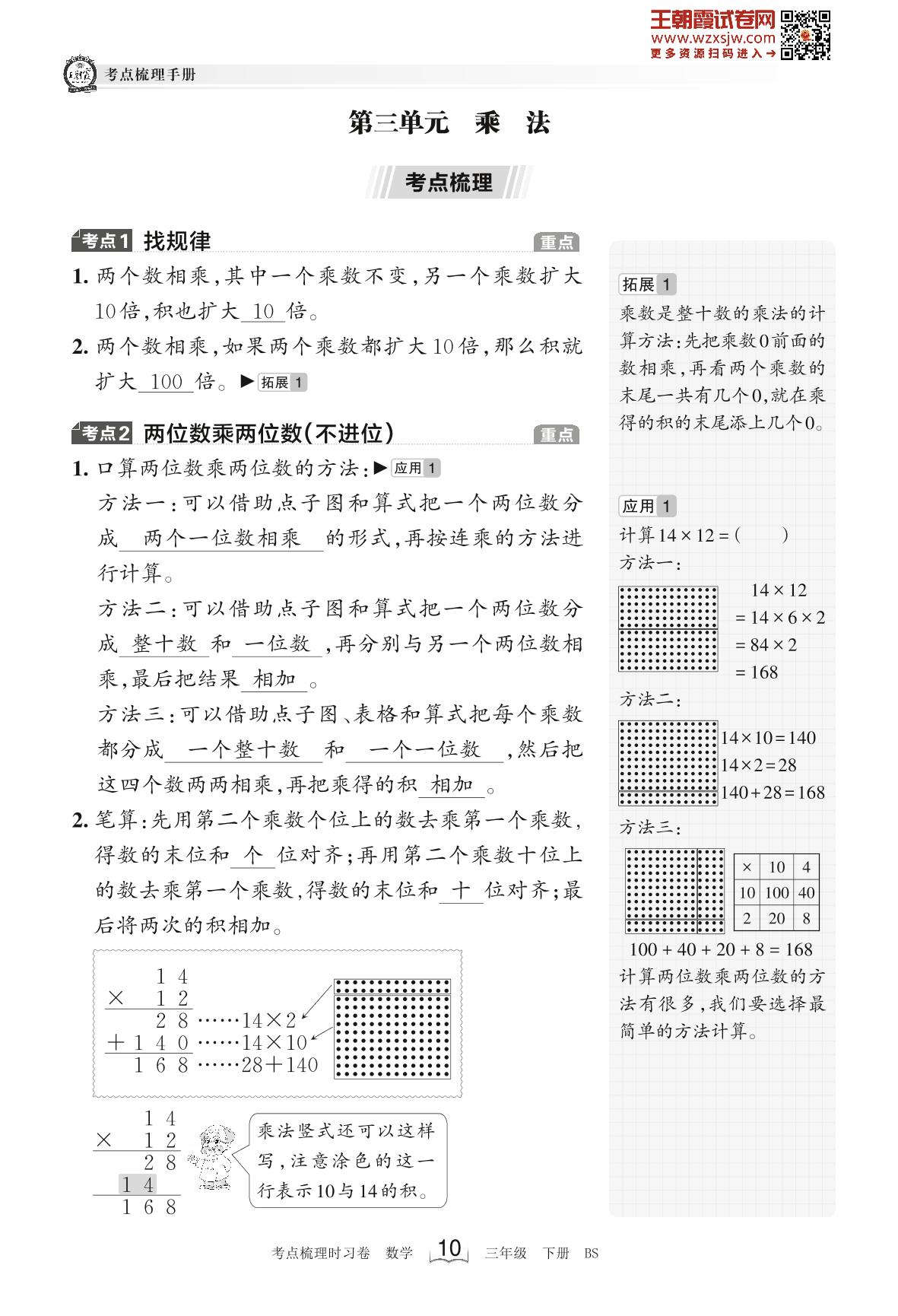 2023下册三年级数学北师版 考点梳理手册——第三单元 乘法