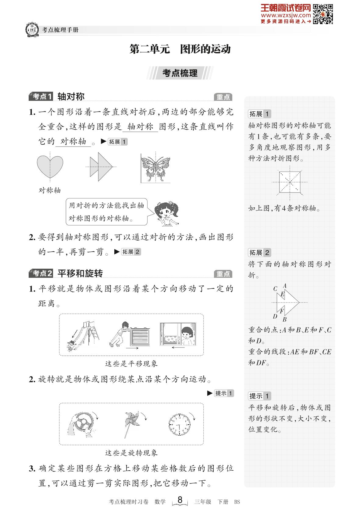 2023下册三年级数学北师版 考点梳理手册——第二单元 图形的运动