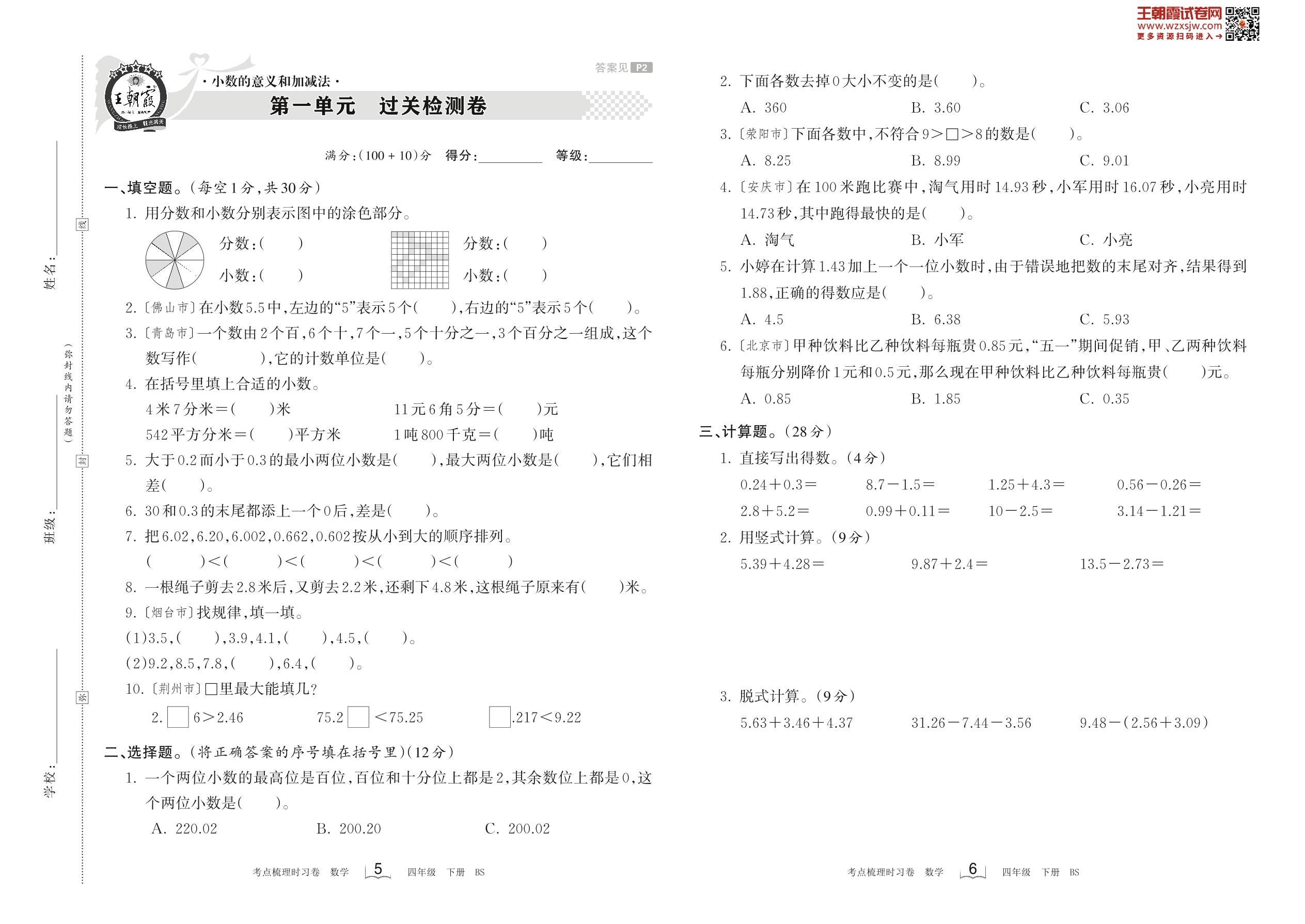 四年级数学北师版下册单元卷