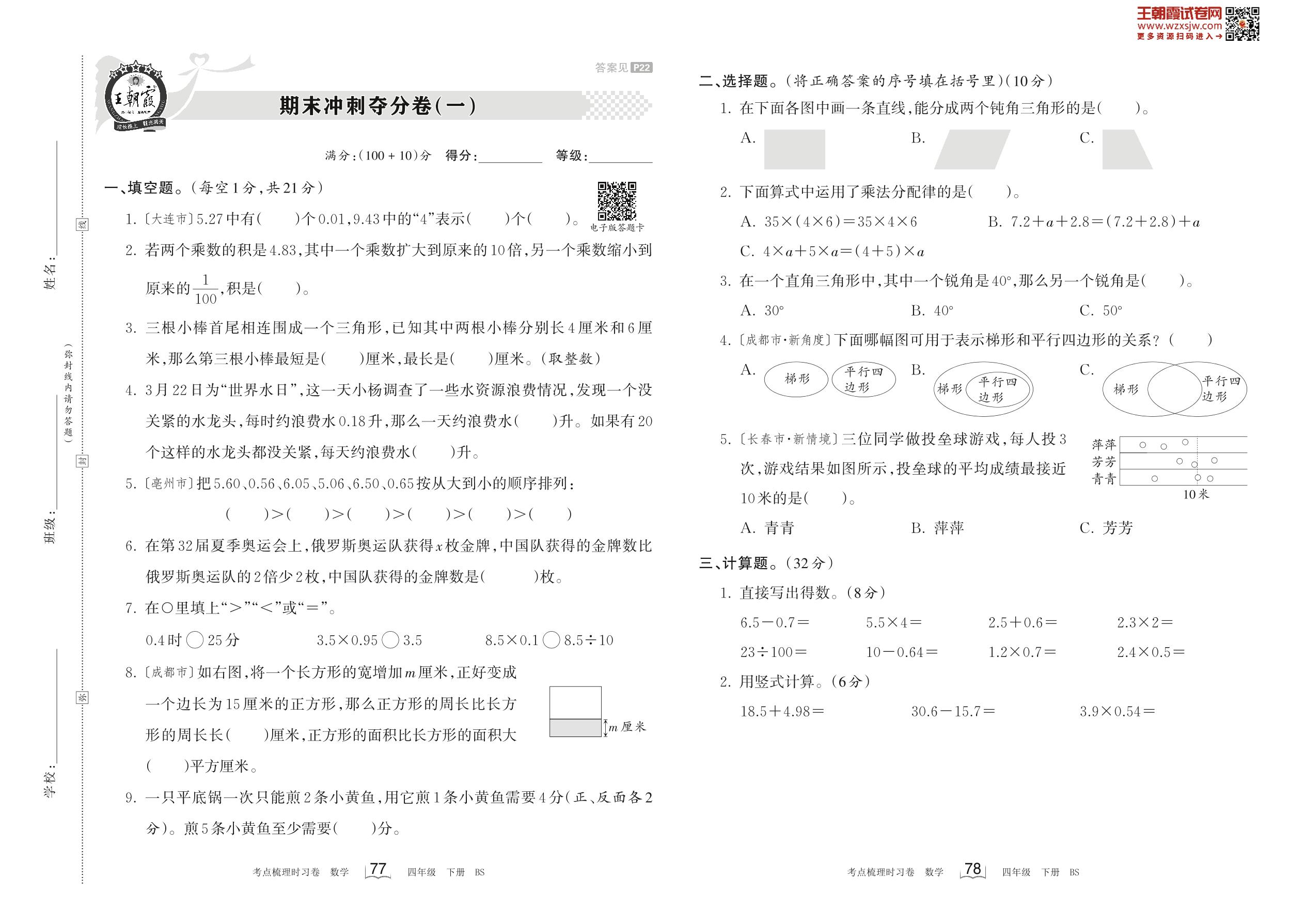 四年级数学北师版下册期末卷