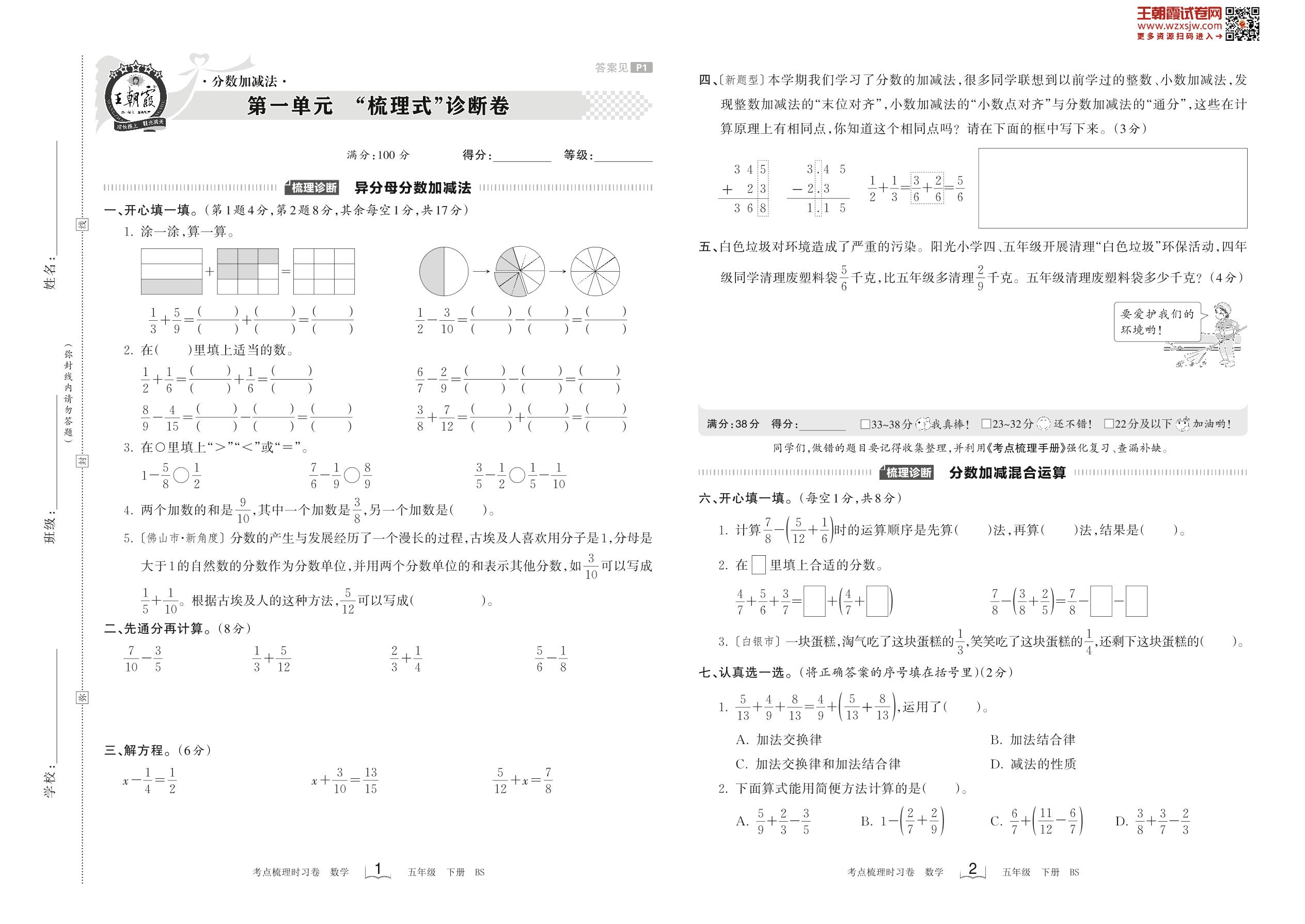 2023下册五年级数学北师版 第一单元 “梳理式”诊断卷