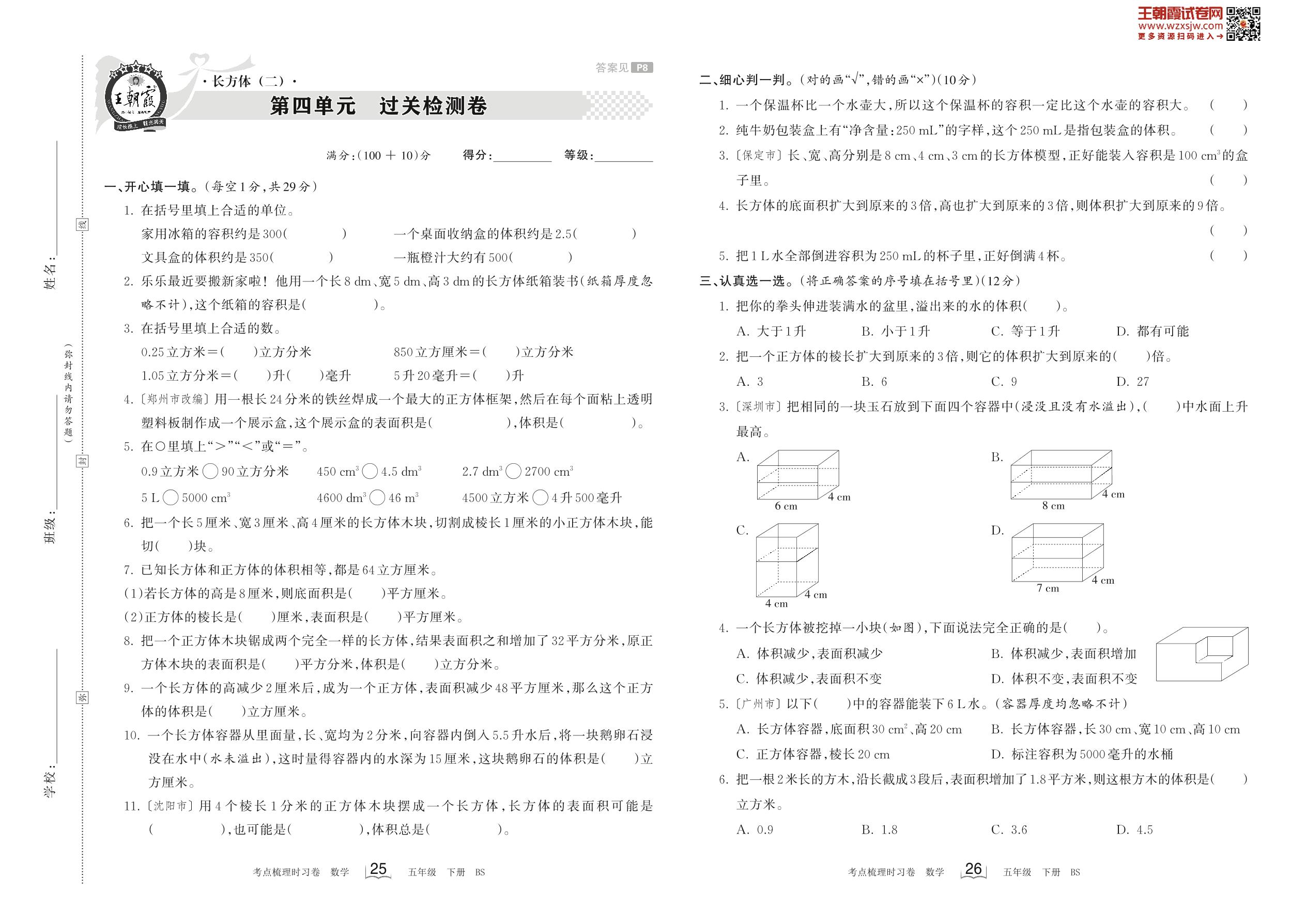 五年级数学北师版下册单元卷