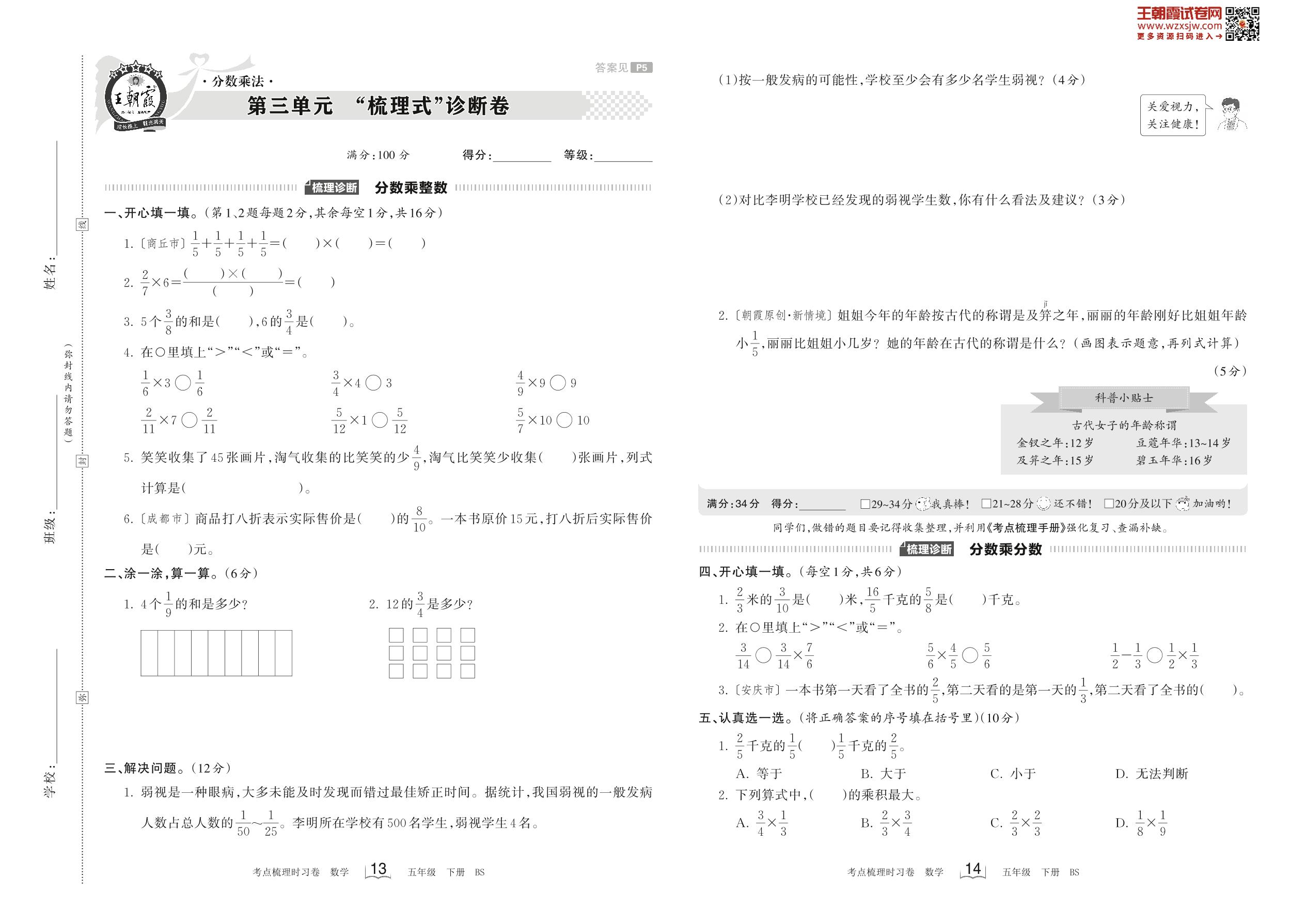 2023下册五年级数学北师版 第三单元 “梳理式”诊断卷