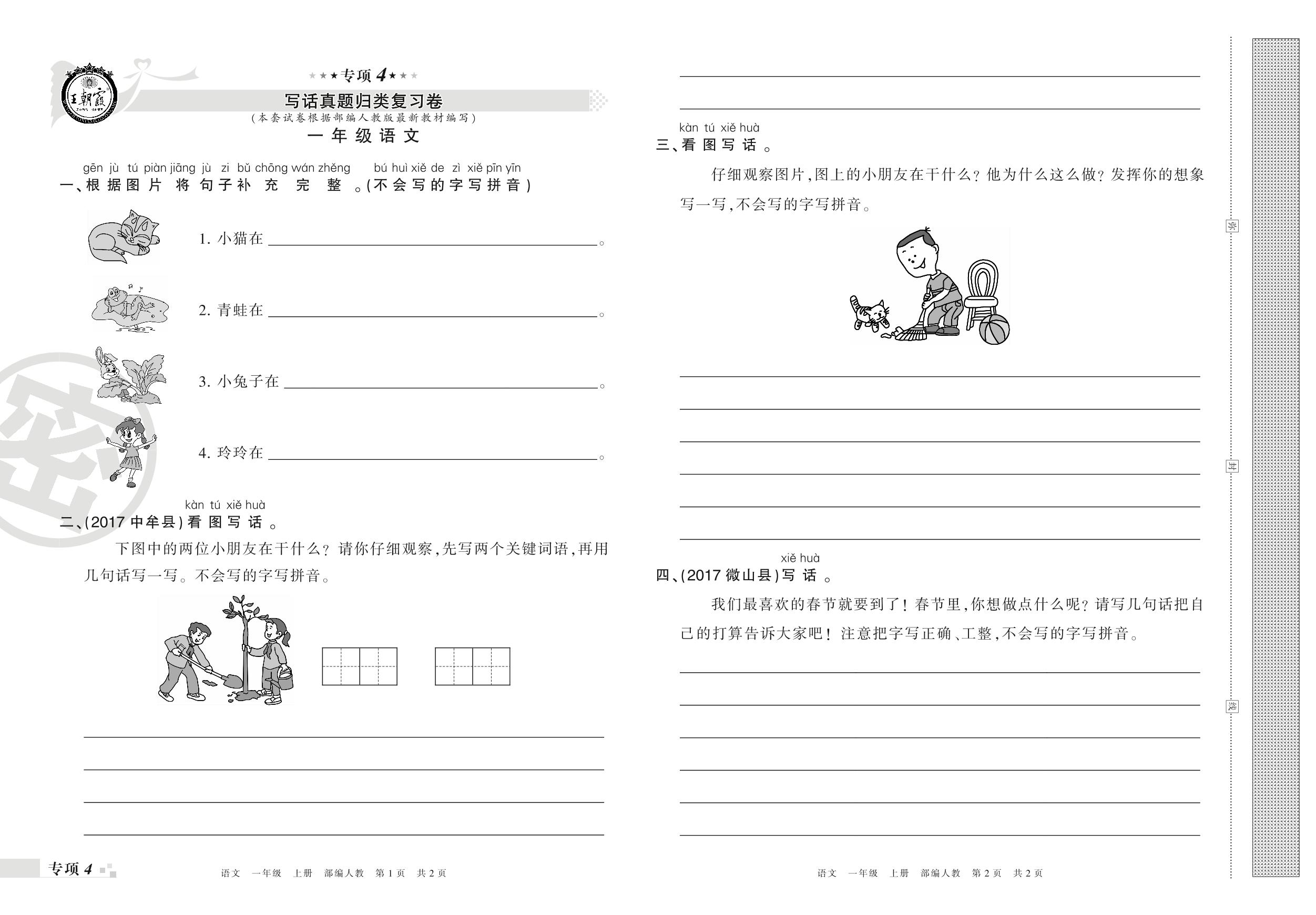 王朝霞期末专项卷——写话真题归类复习一年级上册语文(人教版)【0】