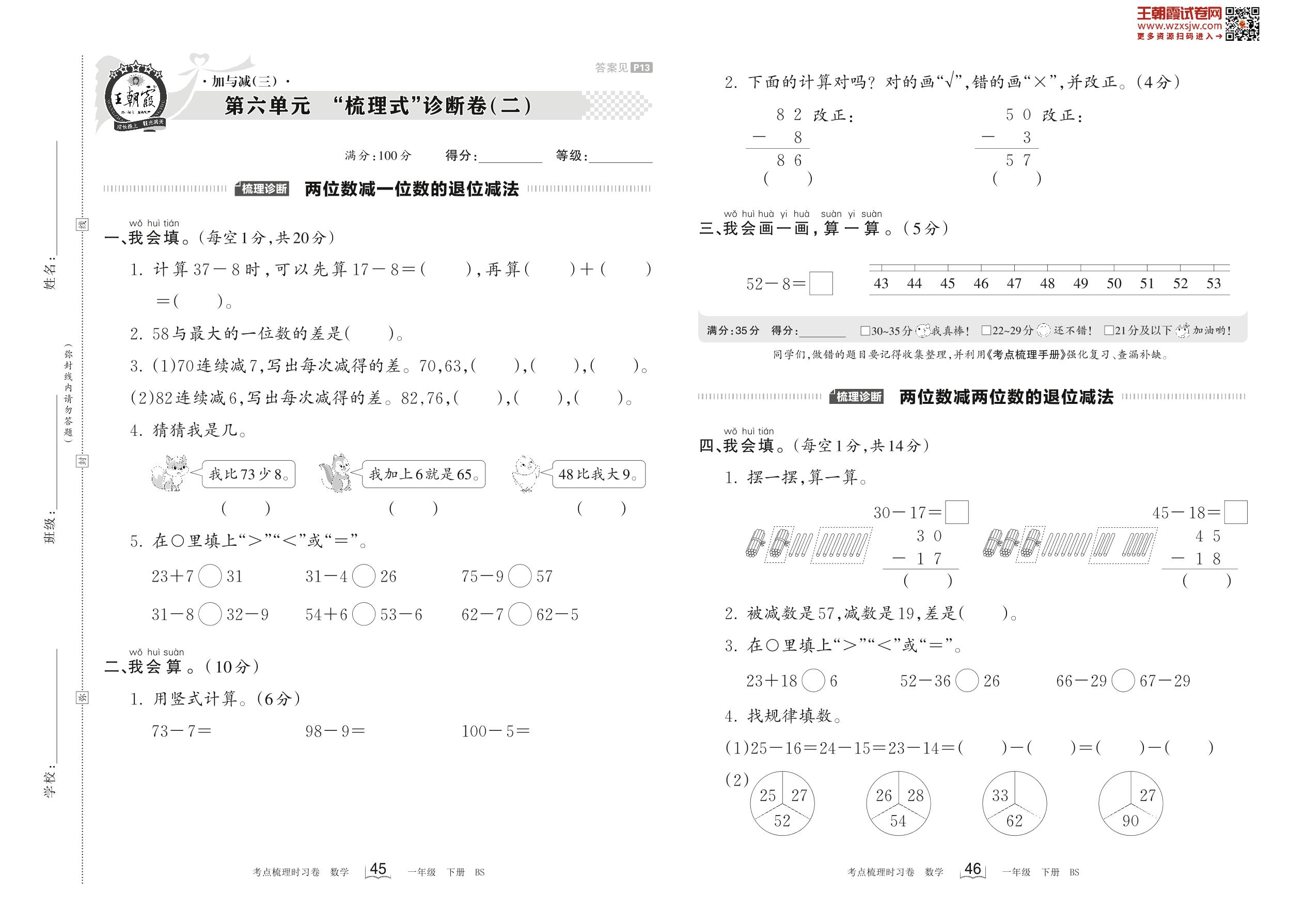 2023下册一年级数学北师版 第六单元 “梳理式”诊断卷(二)
