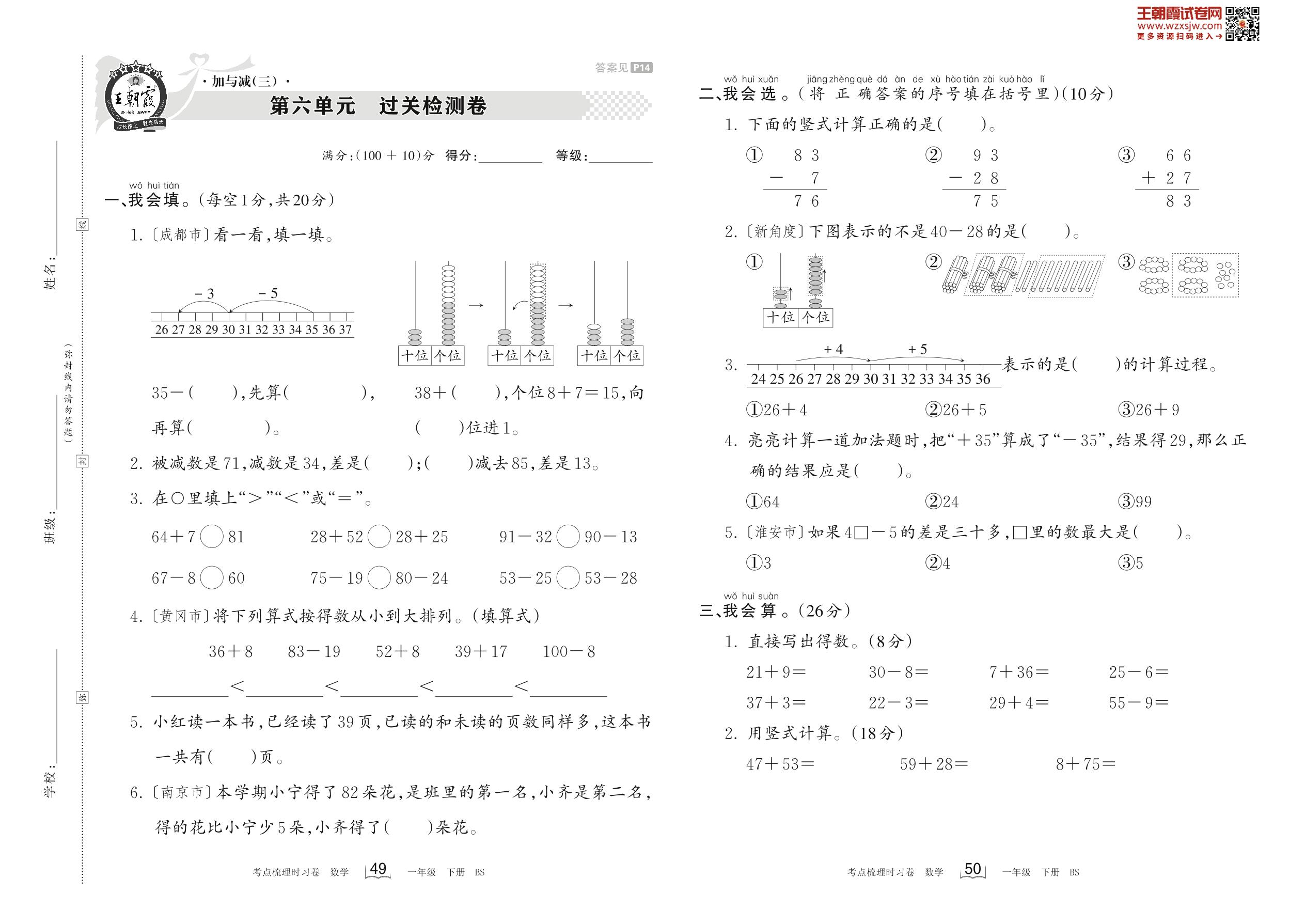 2023下册一年级数学北师版 第六单元 过关检测卷