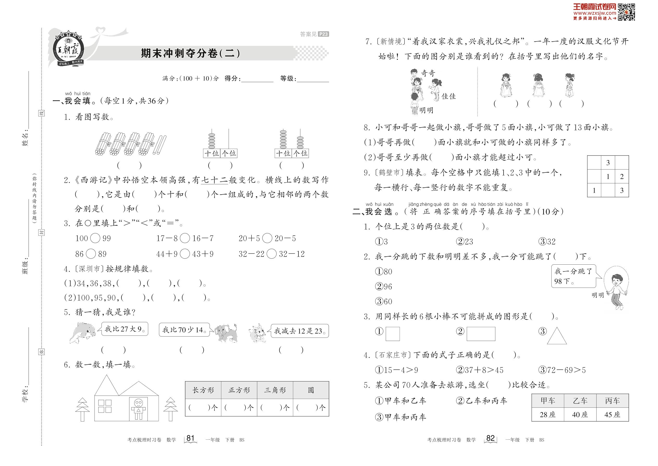 2023下册一年级数学北师版 期末冲刺夺分卷(二)