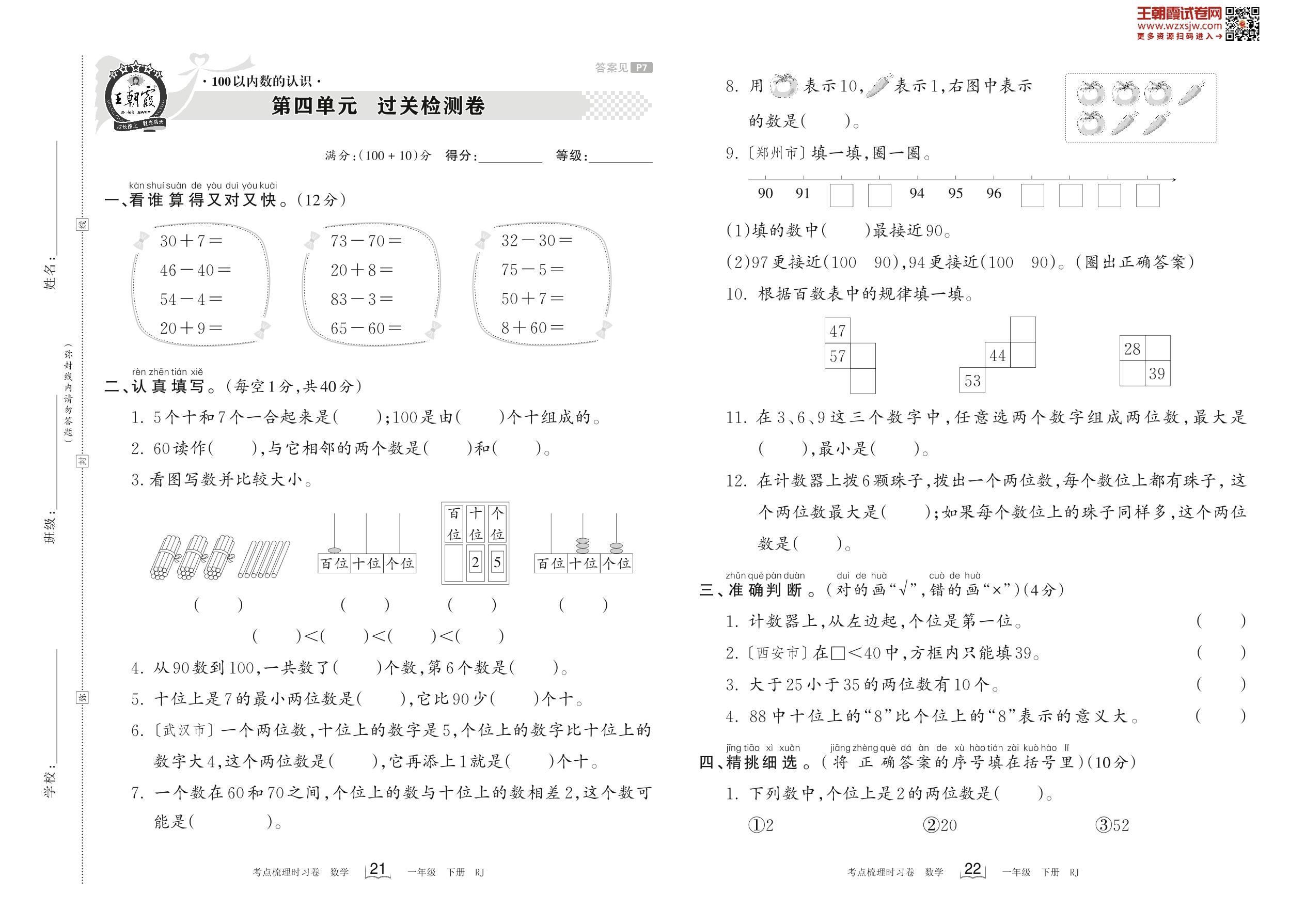 一年级数学人教版下册单元卷