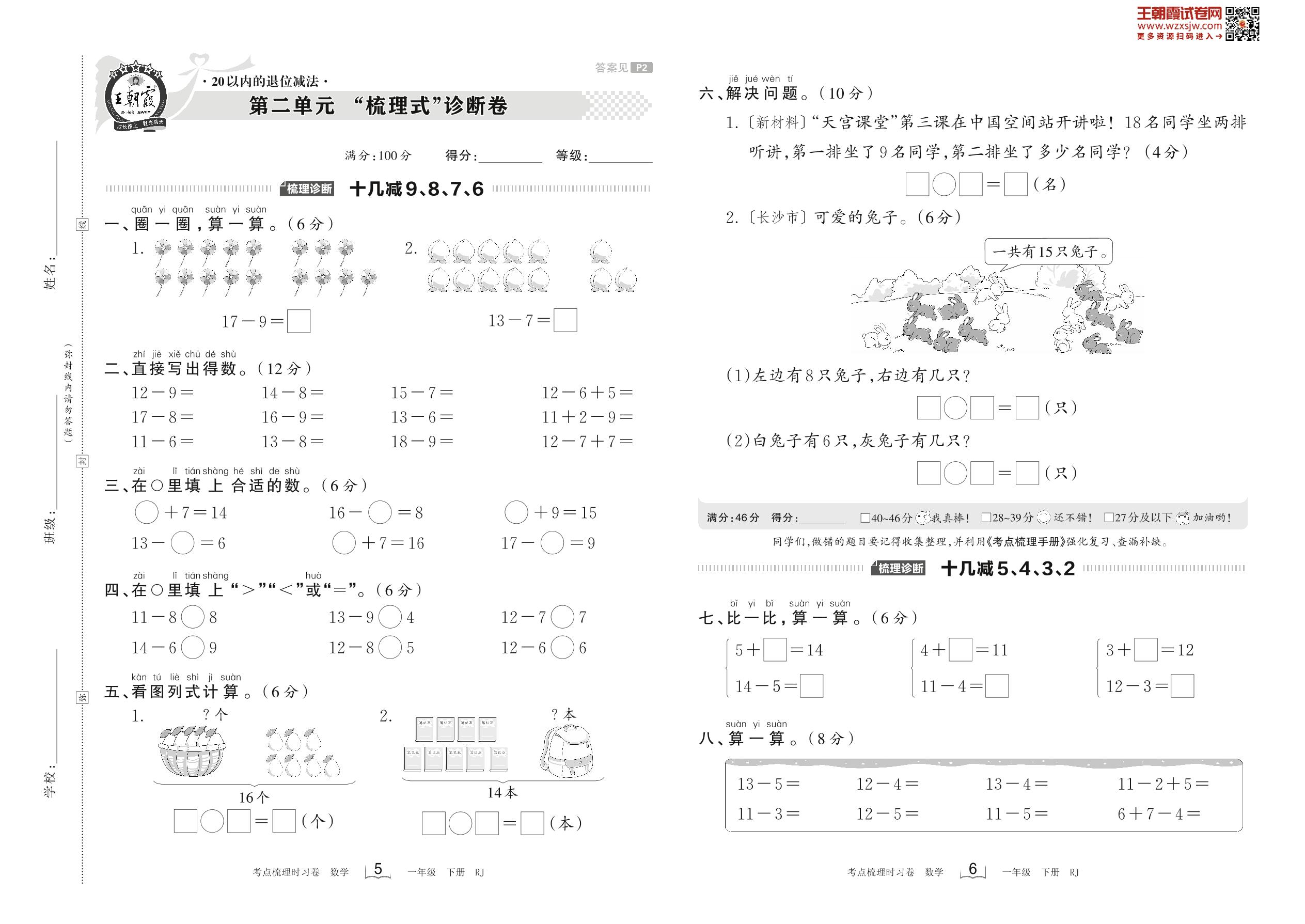 2023下册一年级数学人教版 第二单元 “梳理式”诊断卷