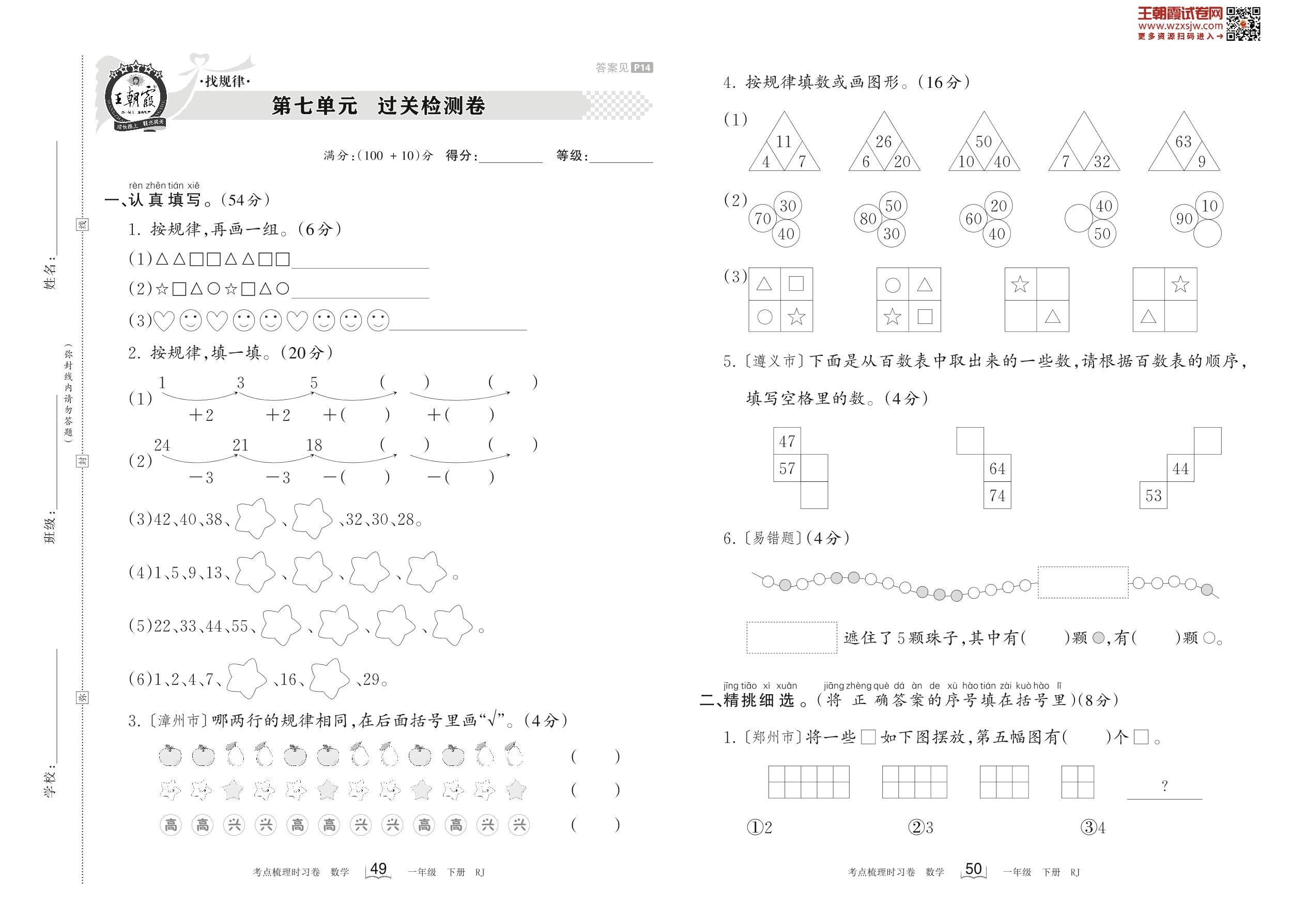 2023下册一年级数学人教版 第七单元 过关检测卷