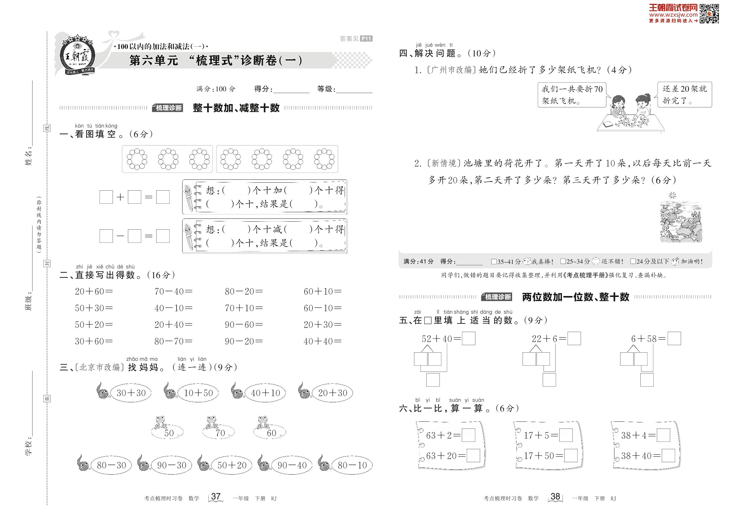 2023下册一年级数学人教版 第六单元 “梳理式”诊断卷(一)