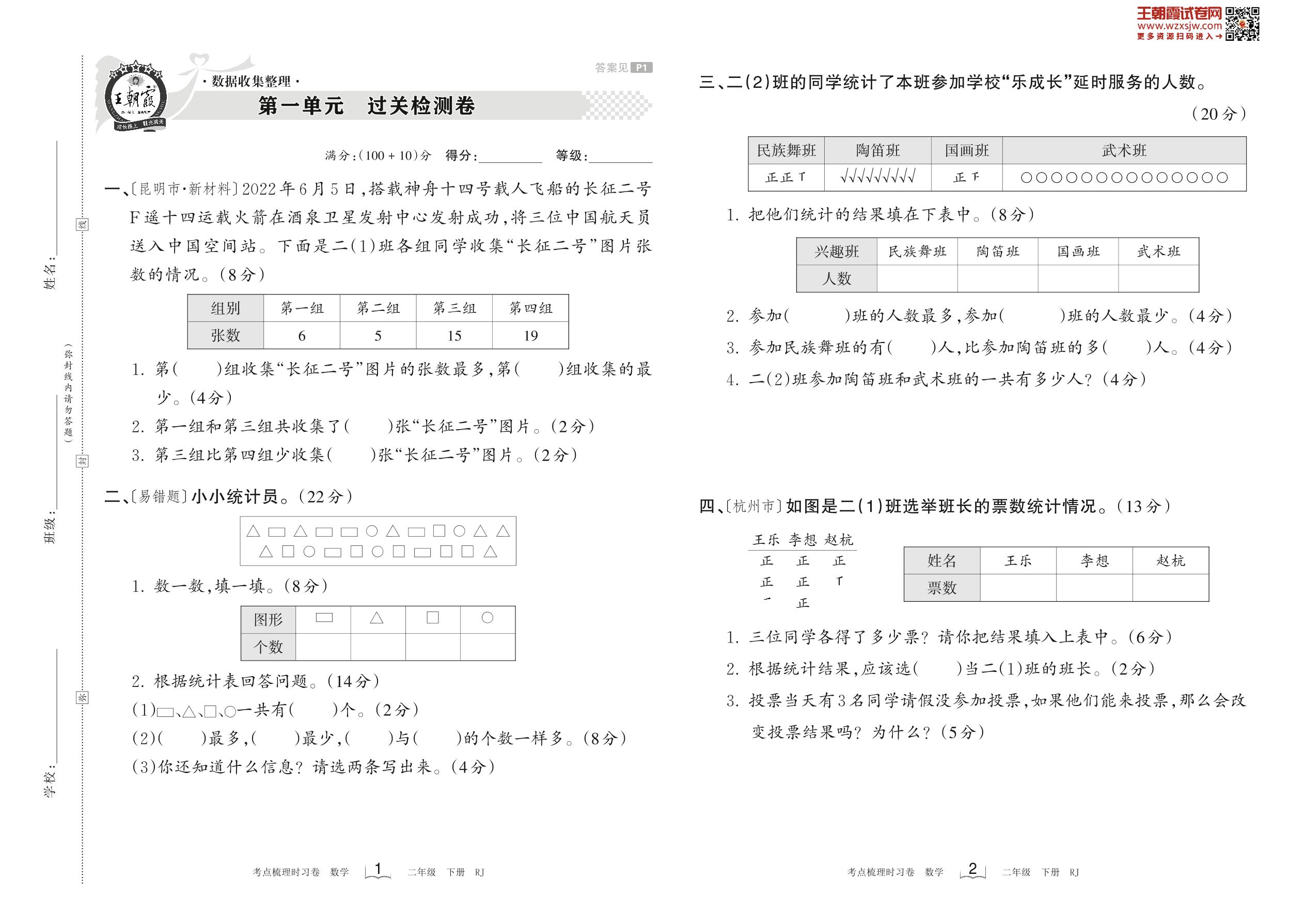 二年级数学人教版下册单元卷