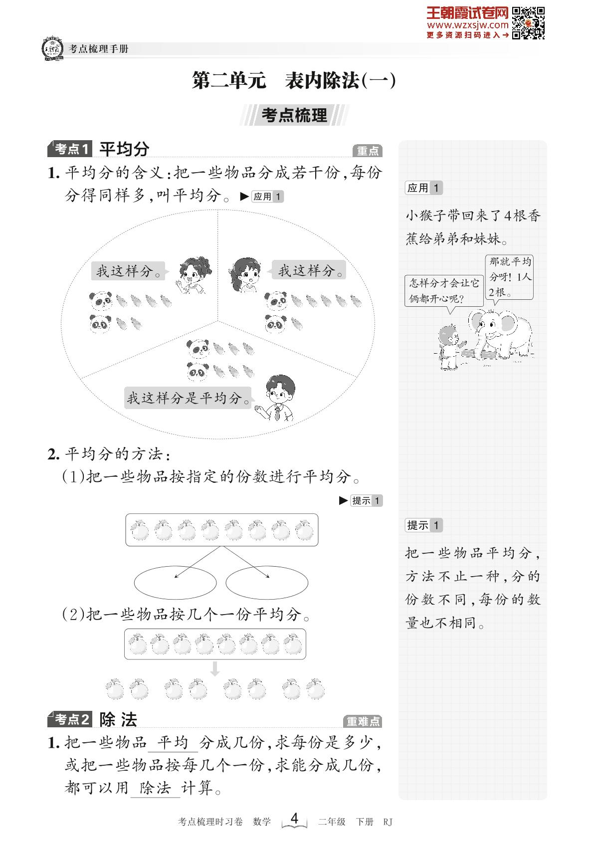 2023下册二年级数学人教版 考点梳理手册——第二单元 表内除法(一)